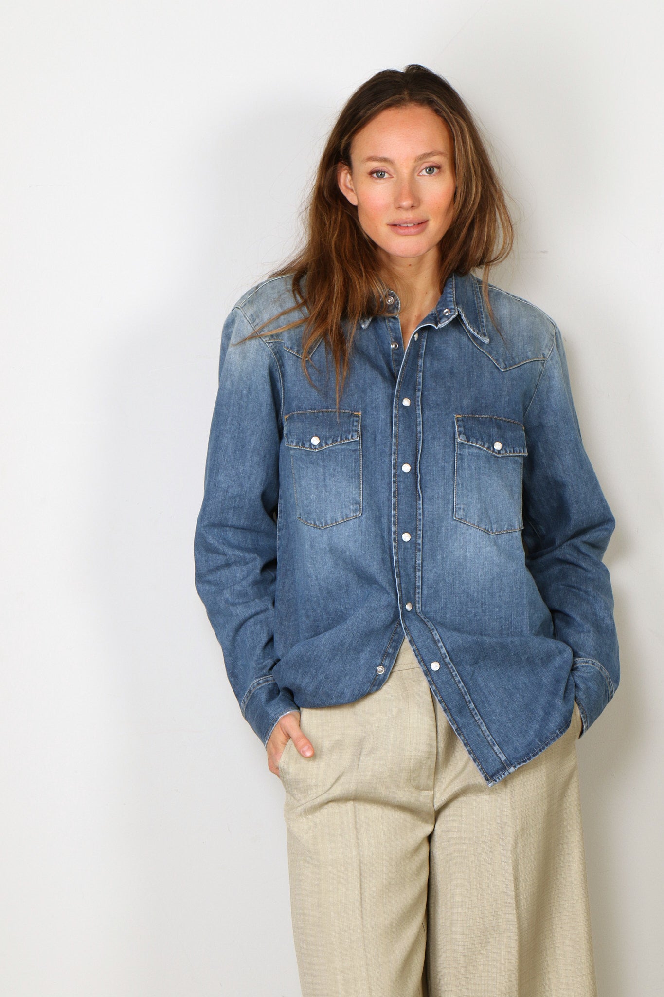 6397 Blouse - Denim Western Shirt - Light Ash Blue
