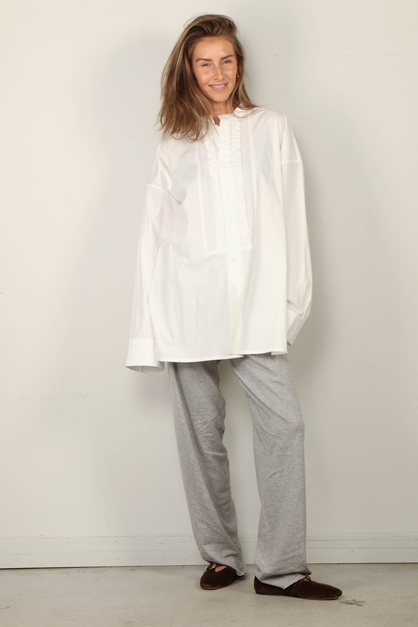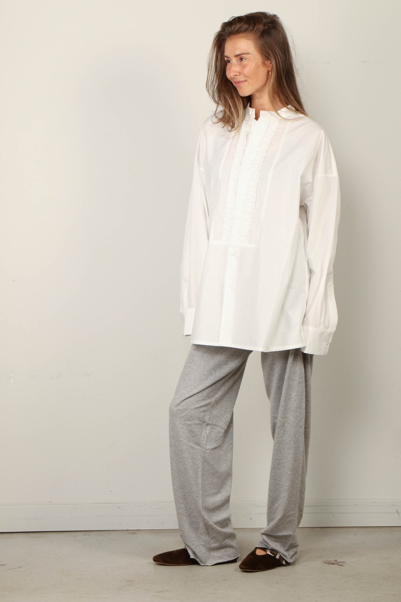 6397 Blouse - Minimalist Tuxedo Shirt - White