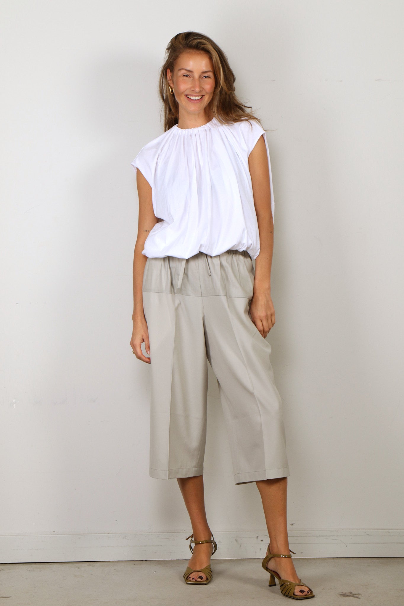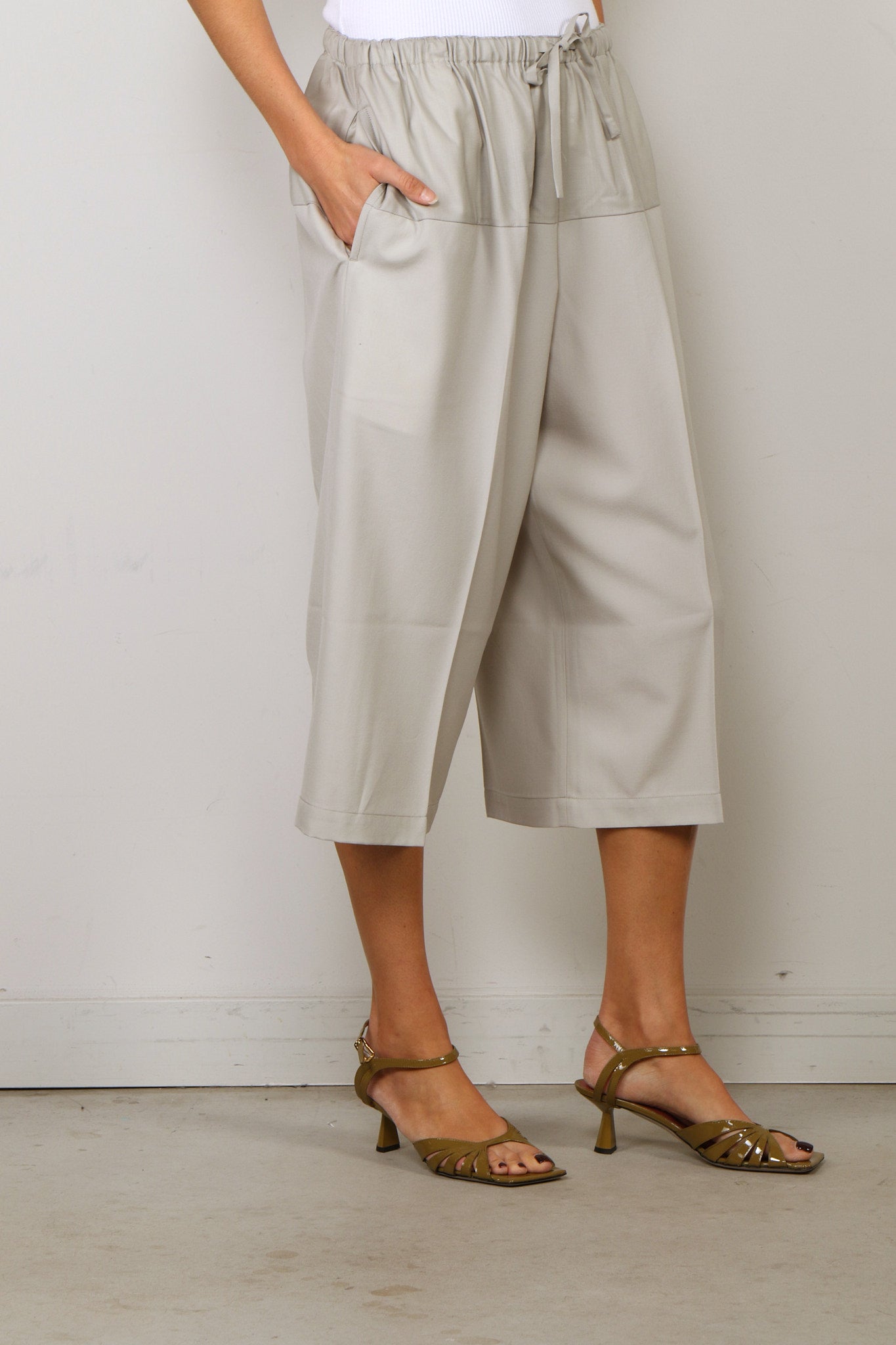 6397 Broek - Cropped Drawstring Pant - Stone