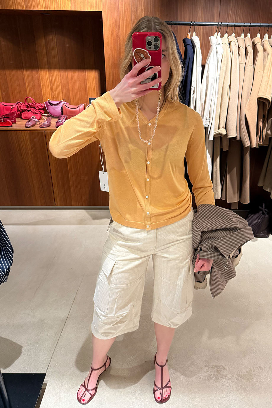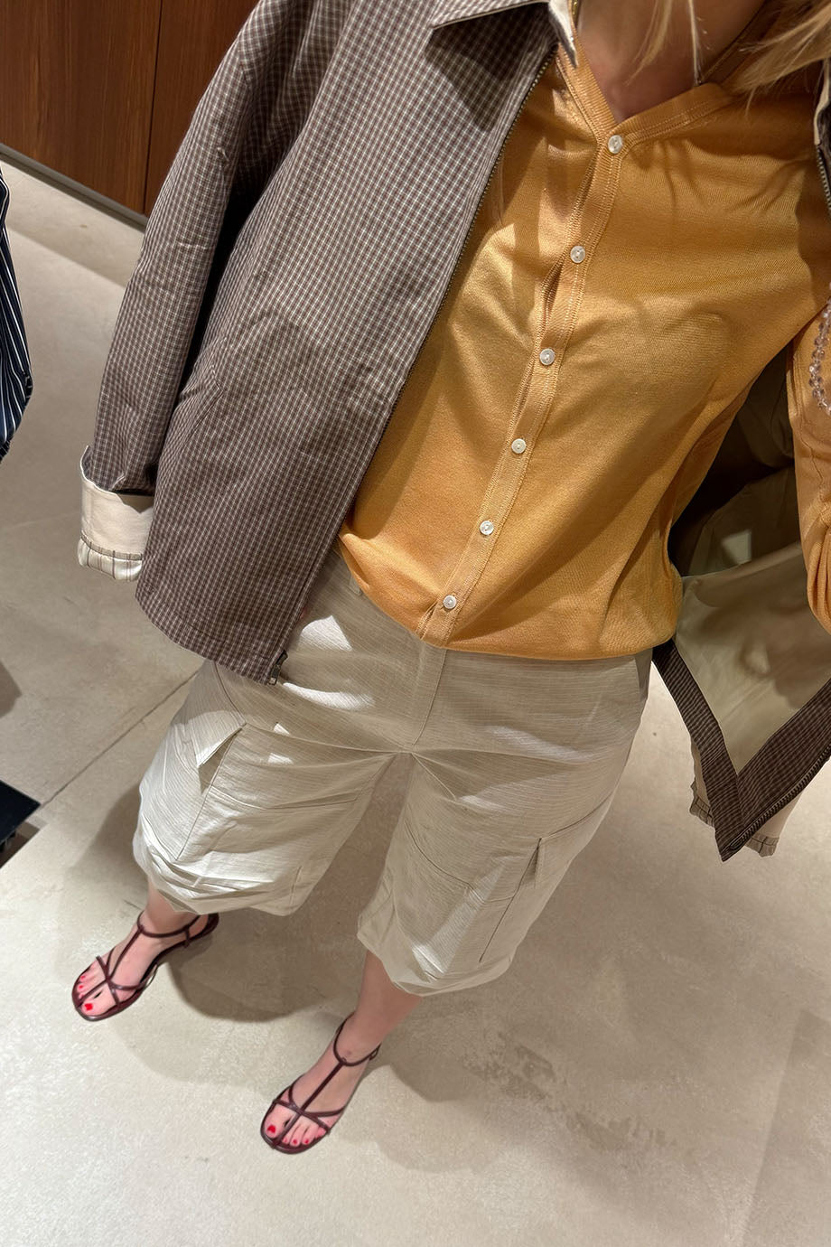 Het model is 1.73m lang en draagt maat XS