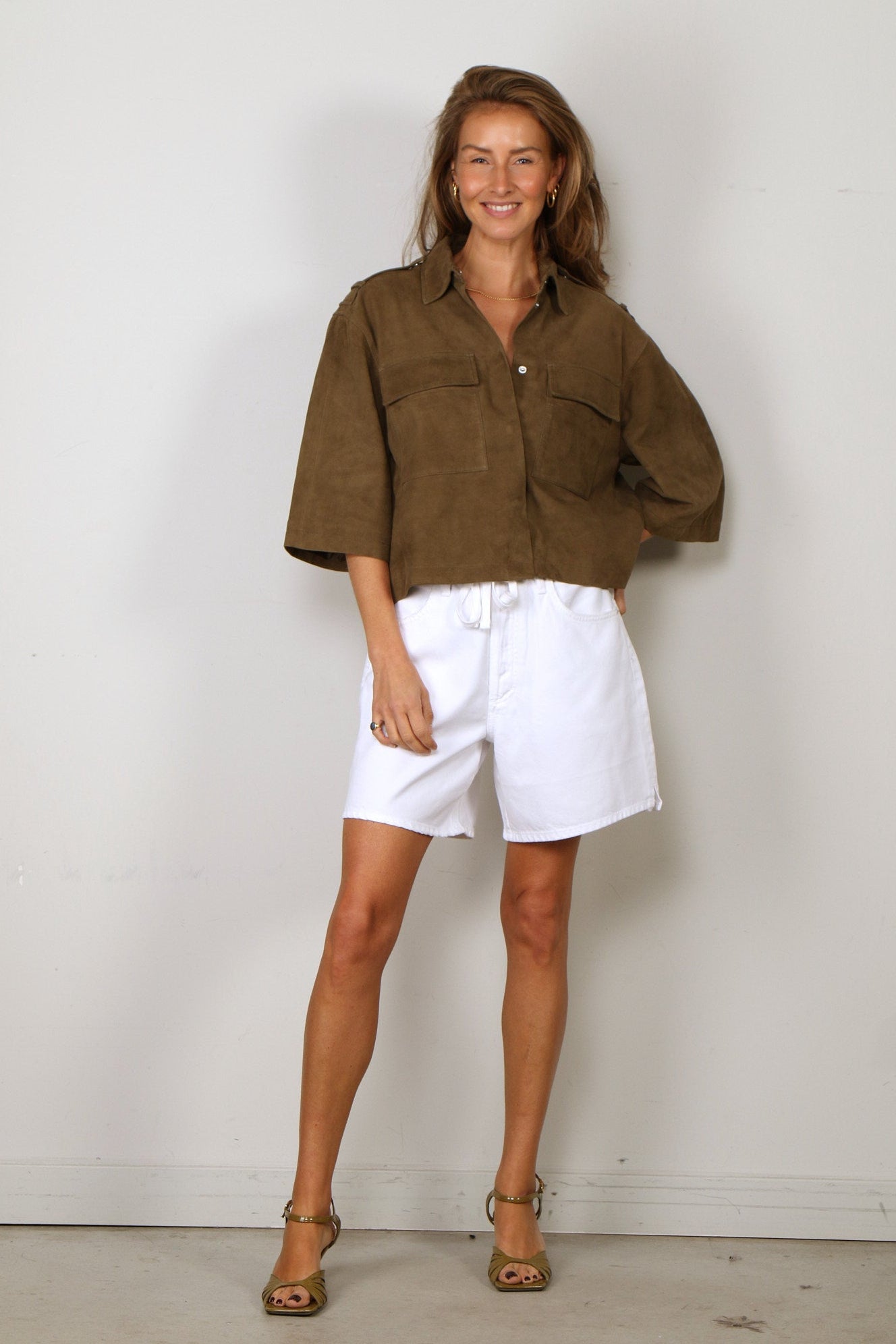 - Stofsamenstelling: 100% suede