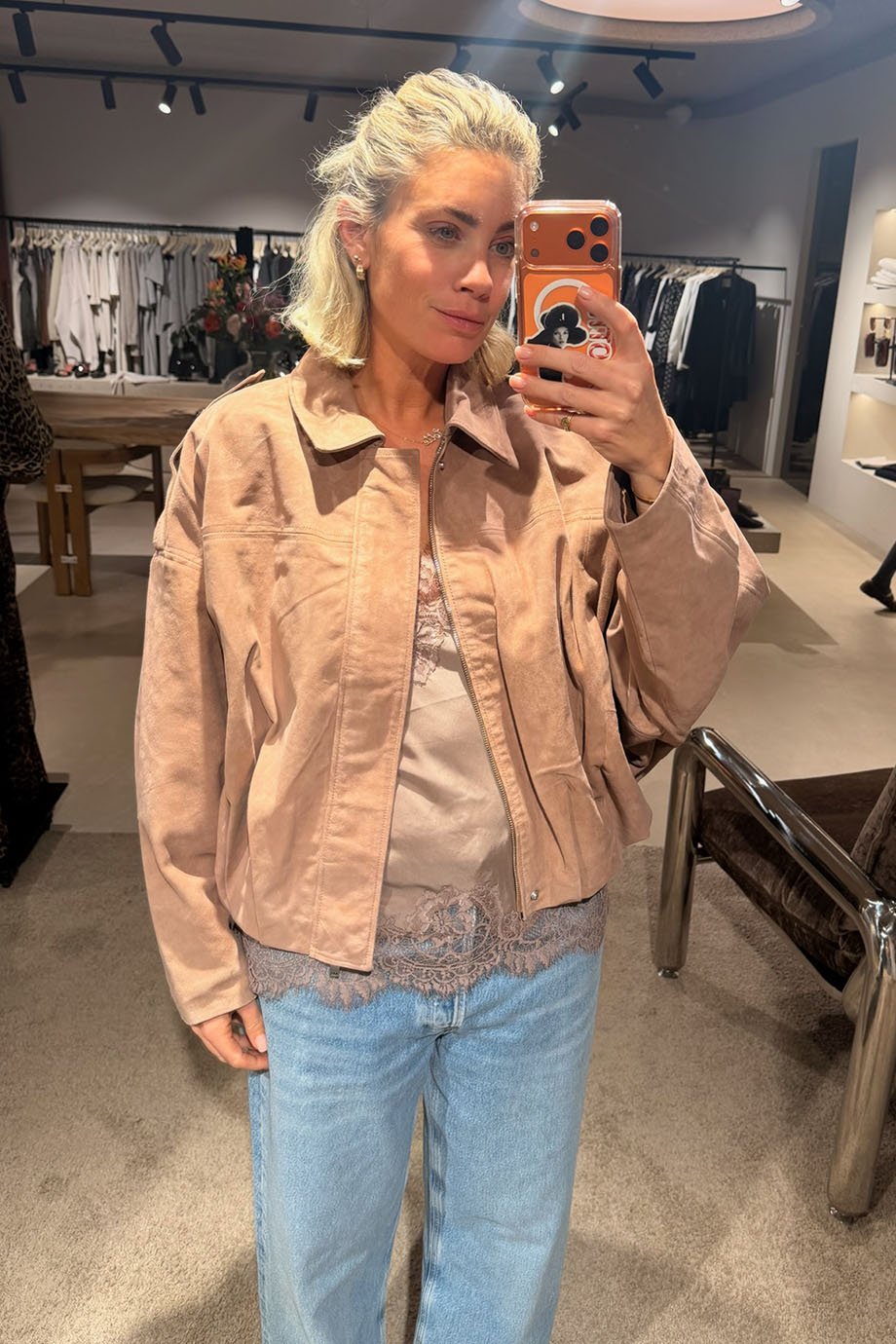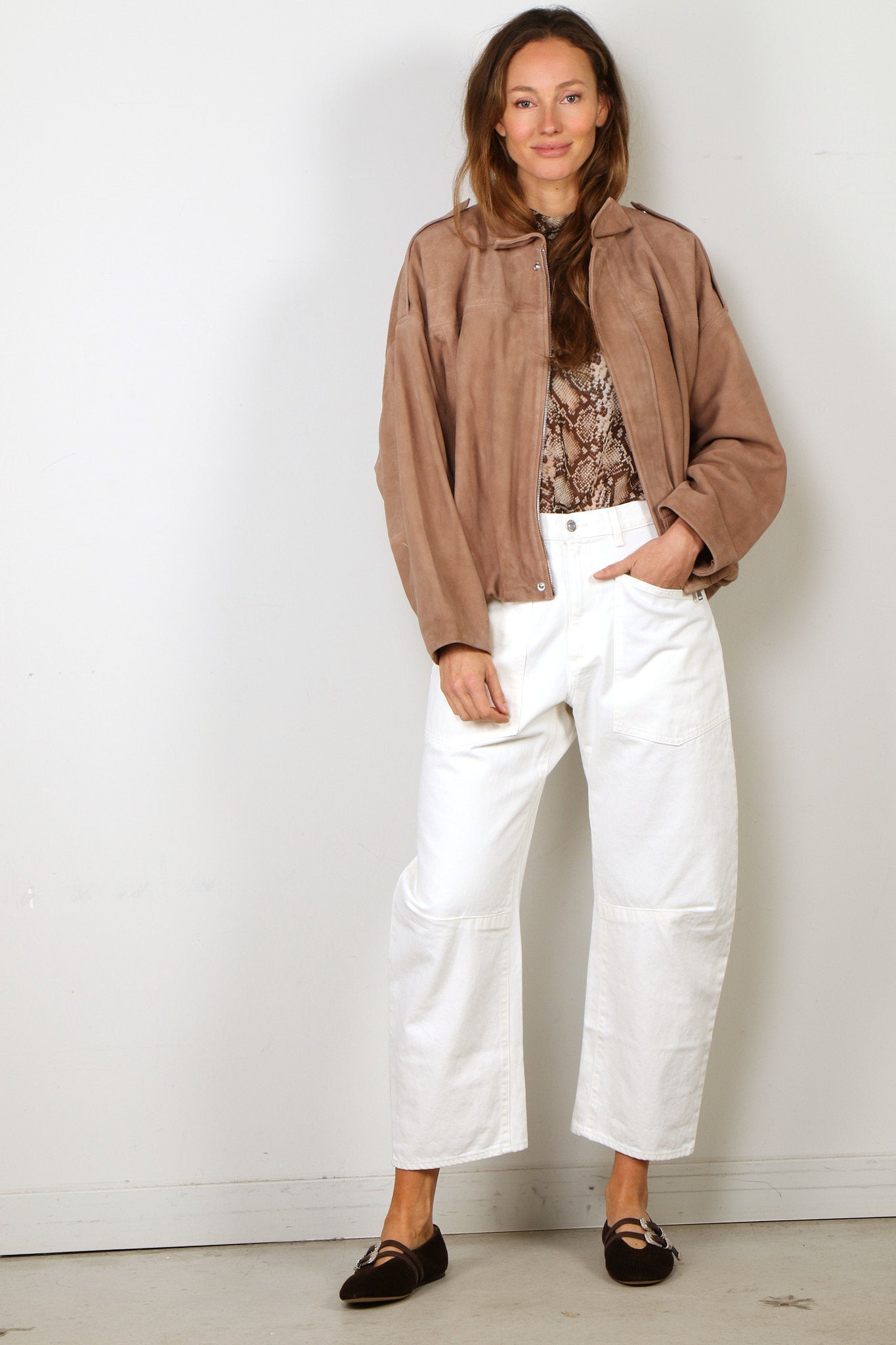 - Stofsamenstelling: 100% goat leer suede