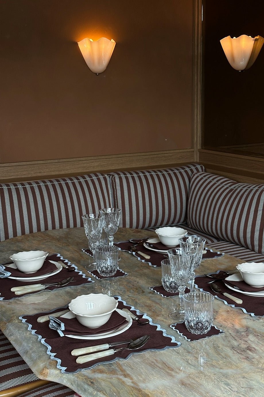 Servetten van Blank Space Amsterdam x BYLOTTE in de kleur bordeaux/lichtblauw