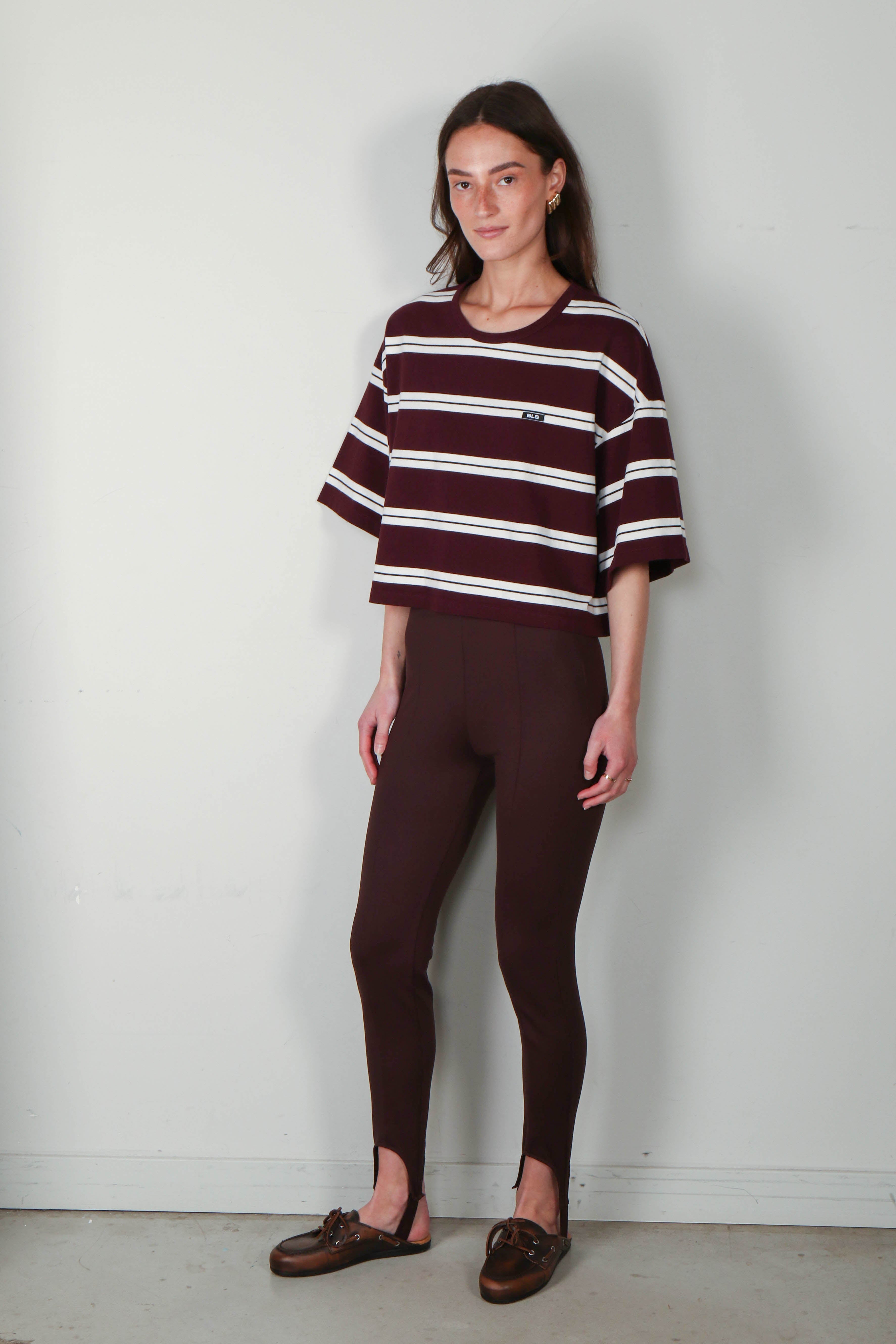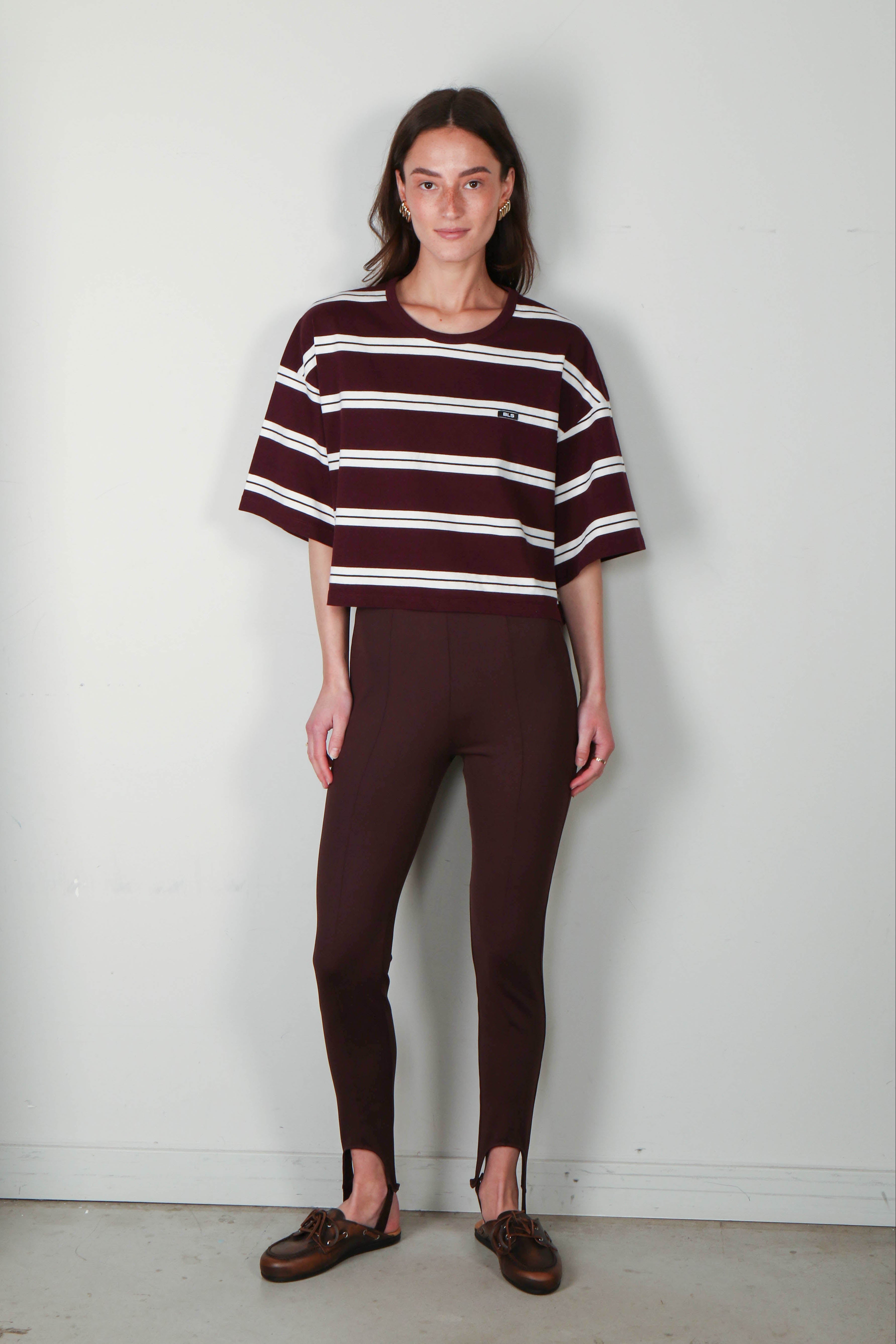 For a sophisticated edge, pair the Uma Legging in brown with the Harvey blazer short and a pair of slingbacks. Style it with the Elle shirt and add sneakers for a relaxed yet refined look.