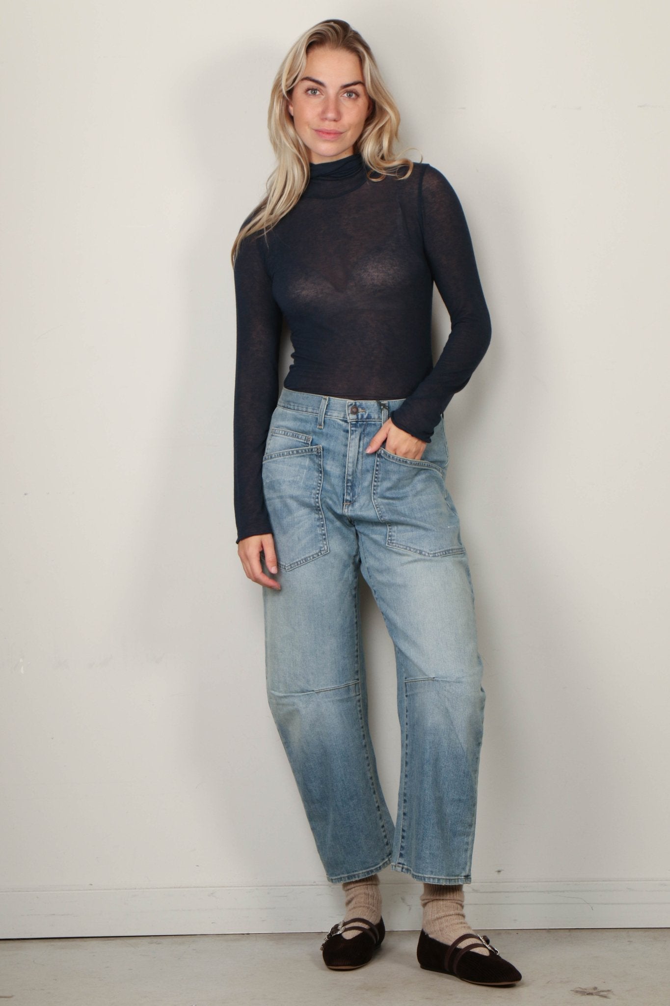 Mysterious and effortlessly refined. Lana takes the elegance of a fitted knit to the next level. Featuring a delicate mock neck, long sleeves, and a soft, lightweight feel. Slightly sheer and beautifully minimal, she’s designed to add quiet impact to any look.