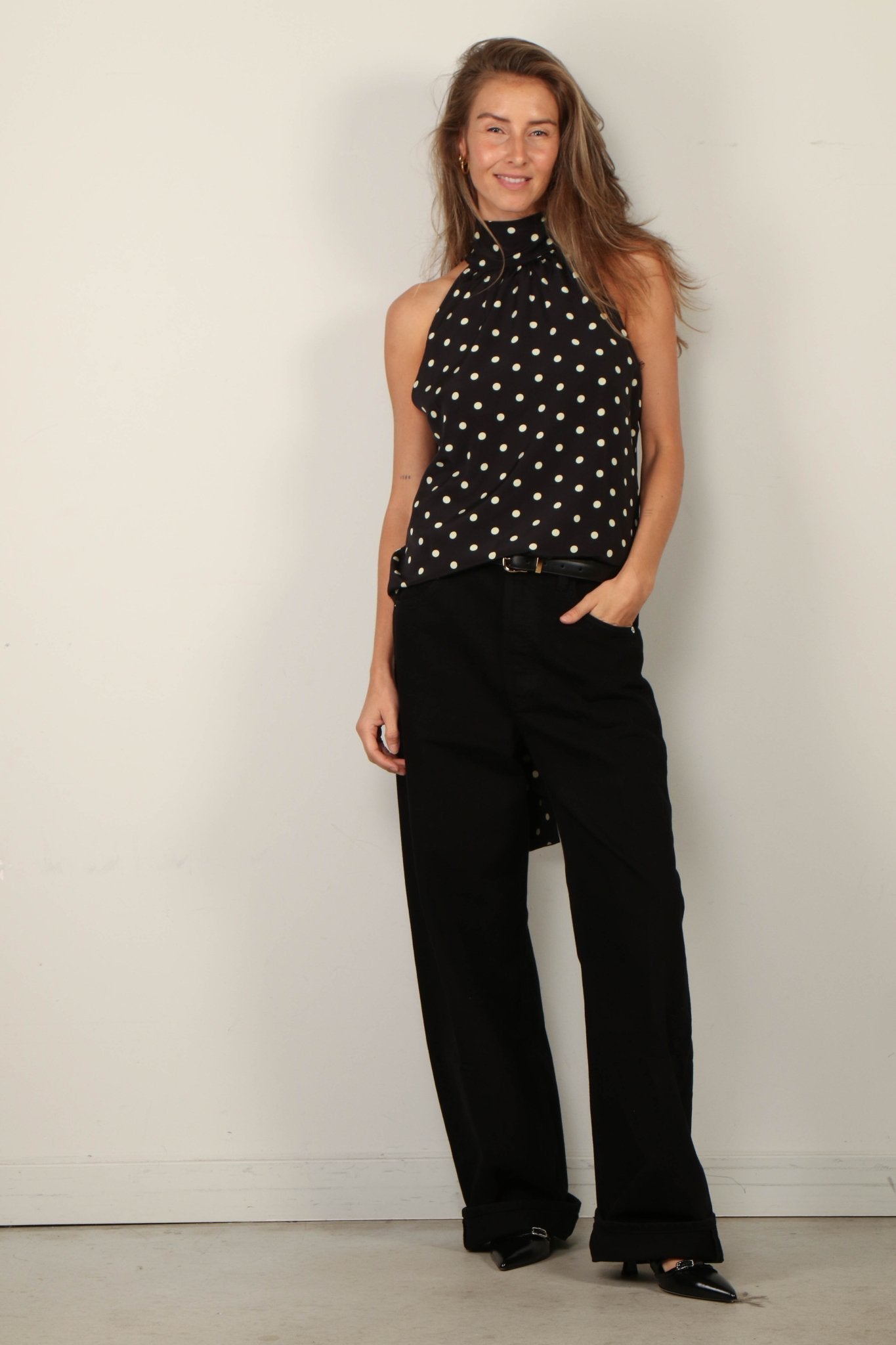 - Het model is 1.73m en draagt maat 27