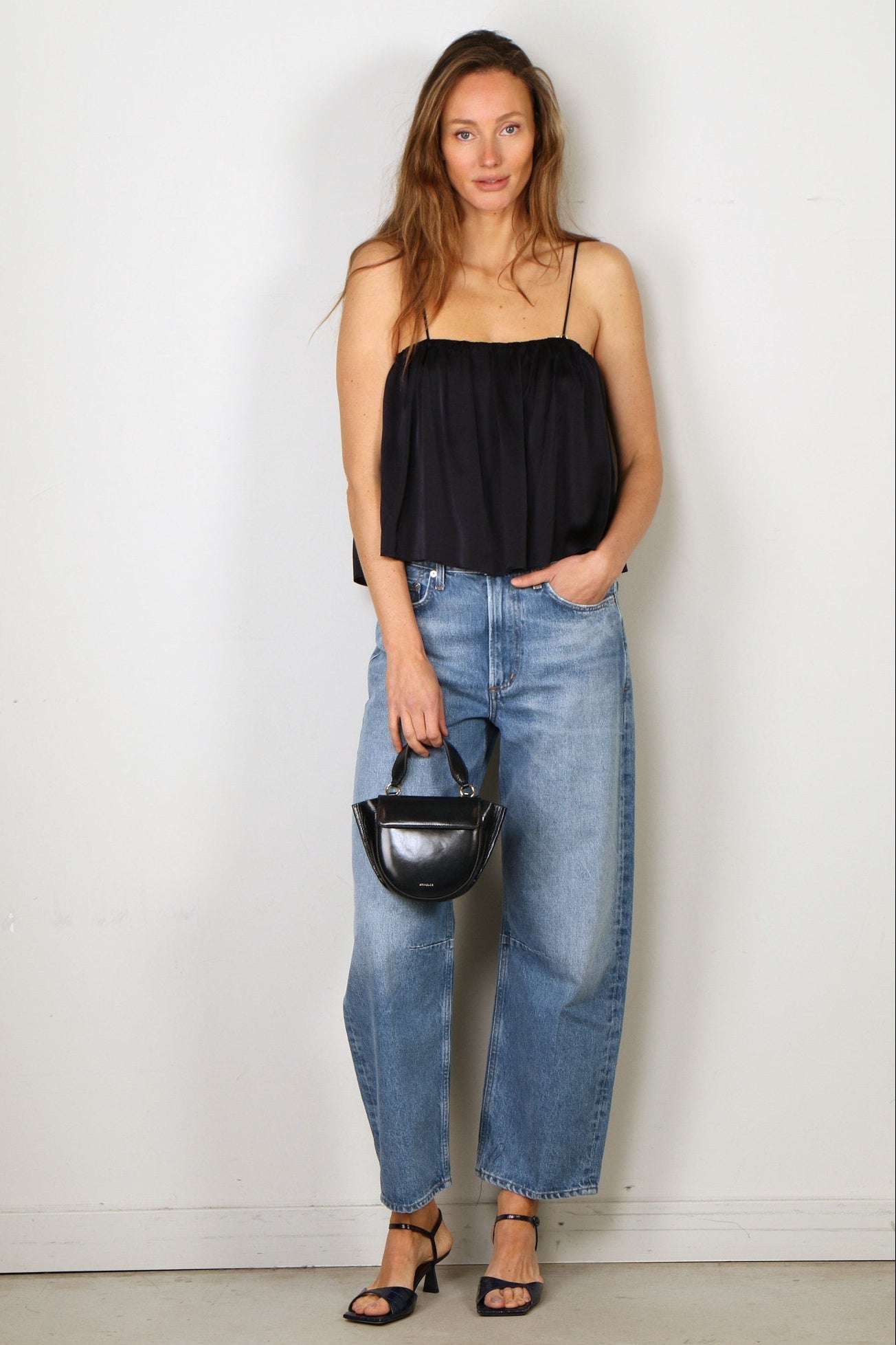 - Relaxed/barrel fit