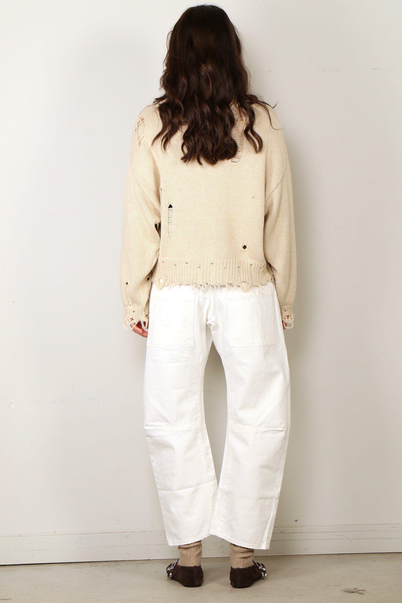 Denimist Sweater - Oversized Cropped American Flag - Oatmeal
