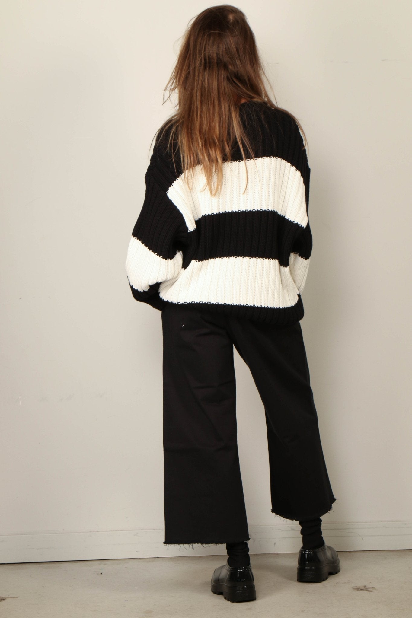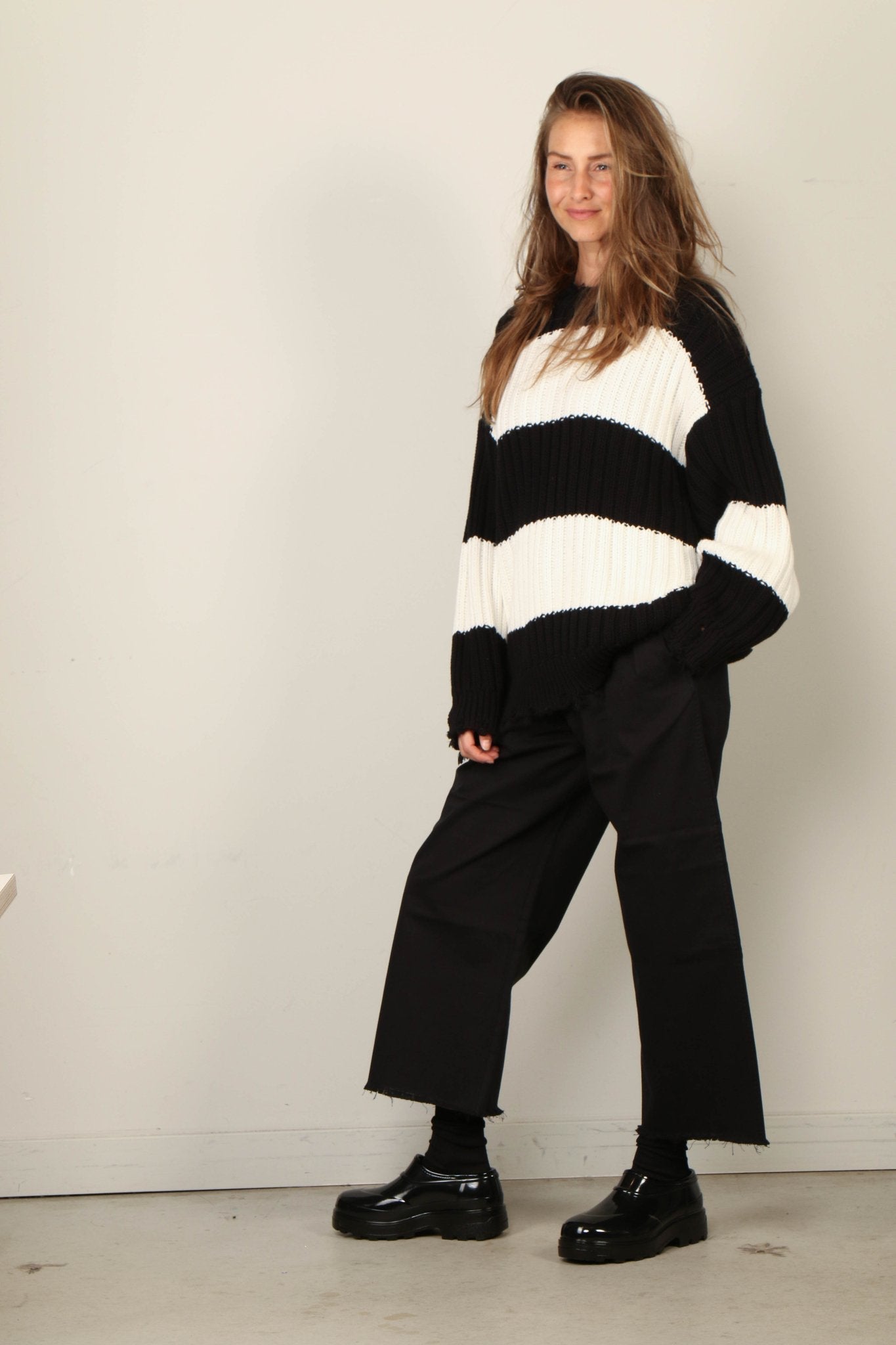 Denimist Sweater - Oversized Ribbed - Black Ecru Jumbo Stripe