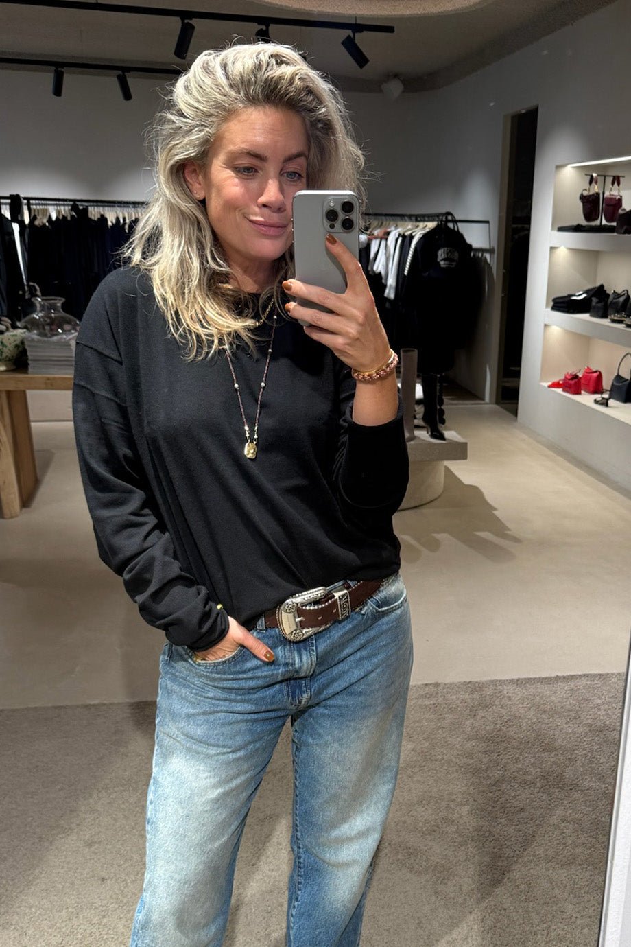 • Het model is 1.73m en draagt One size