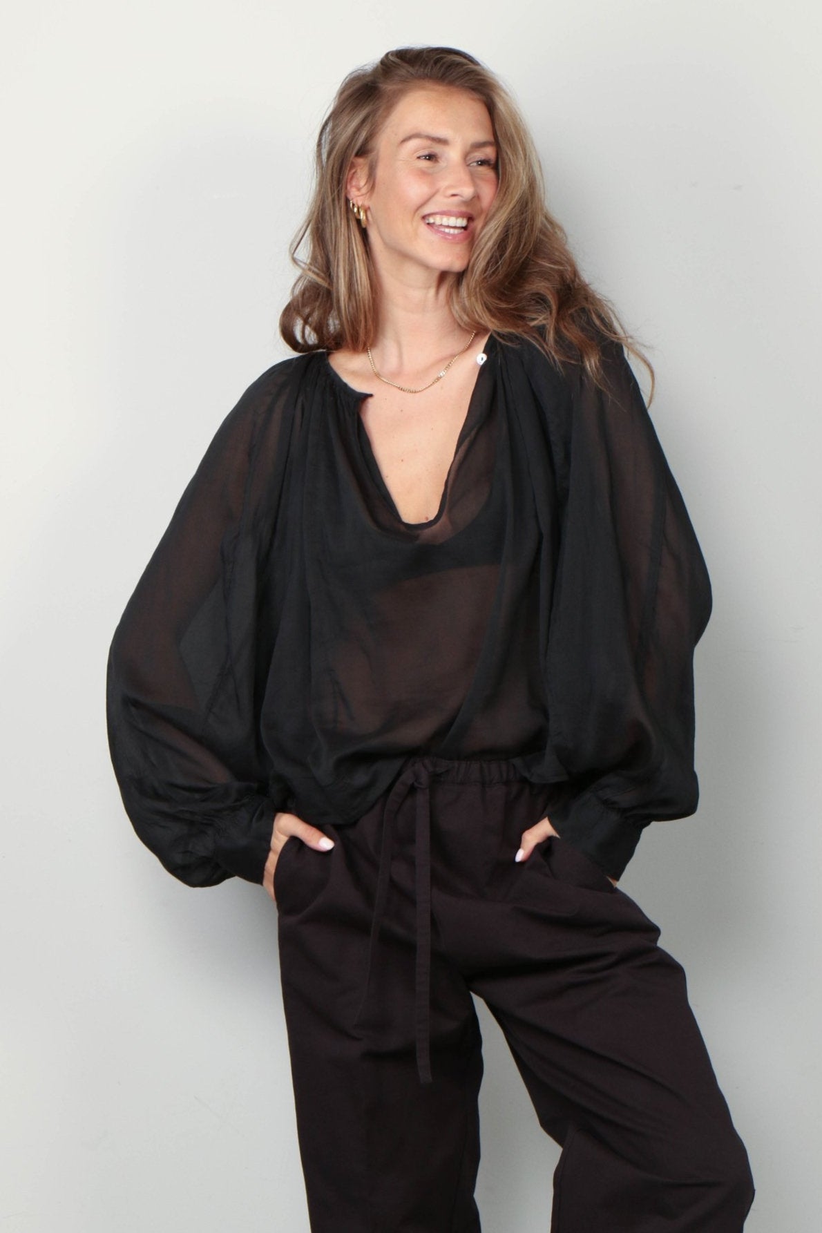 forte_forte Blouse - Co/Se Voile Bohemain Shirt - Nero