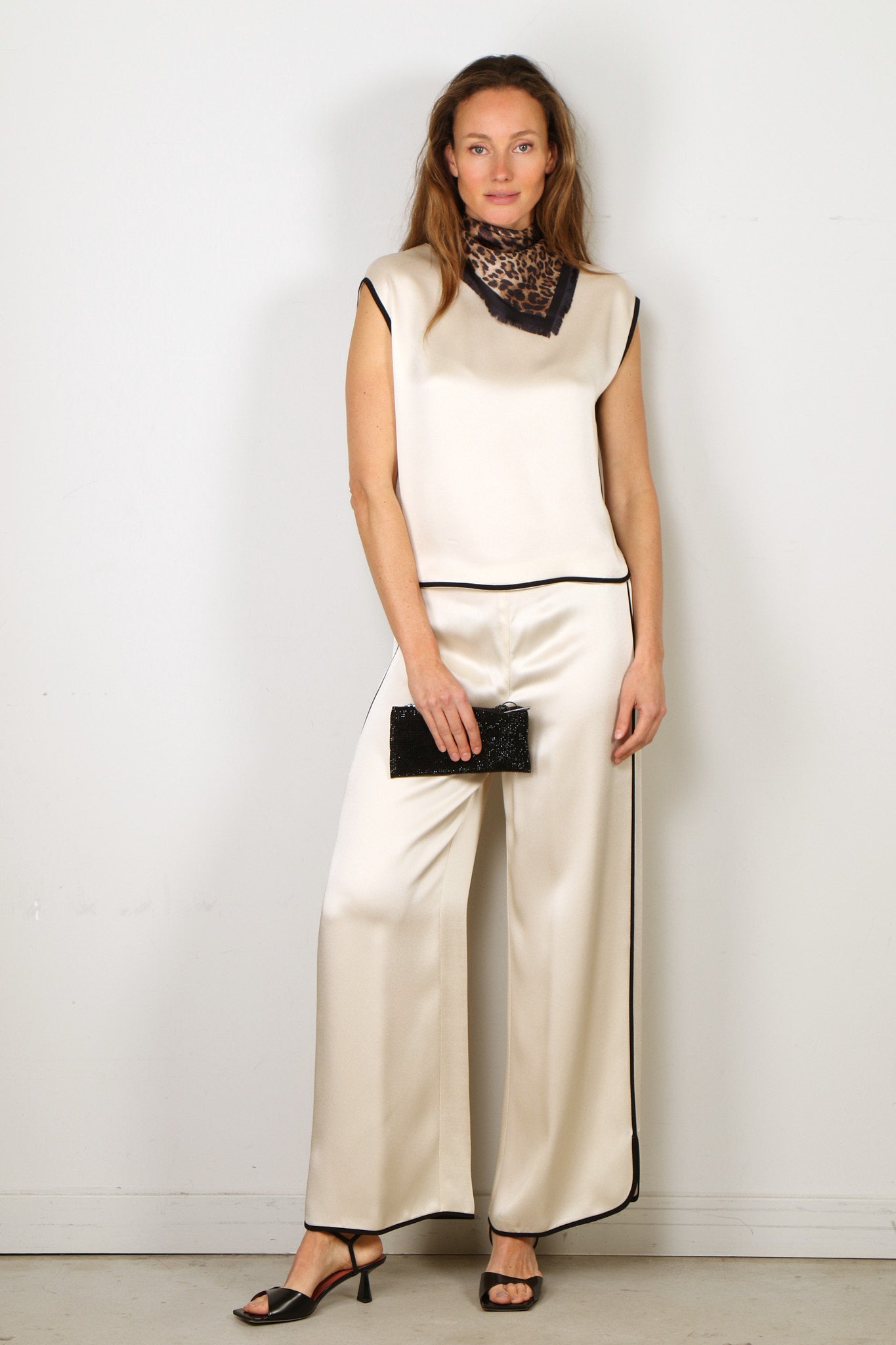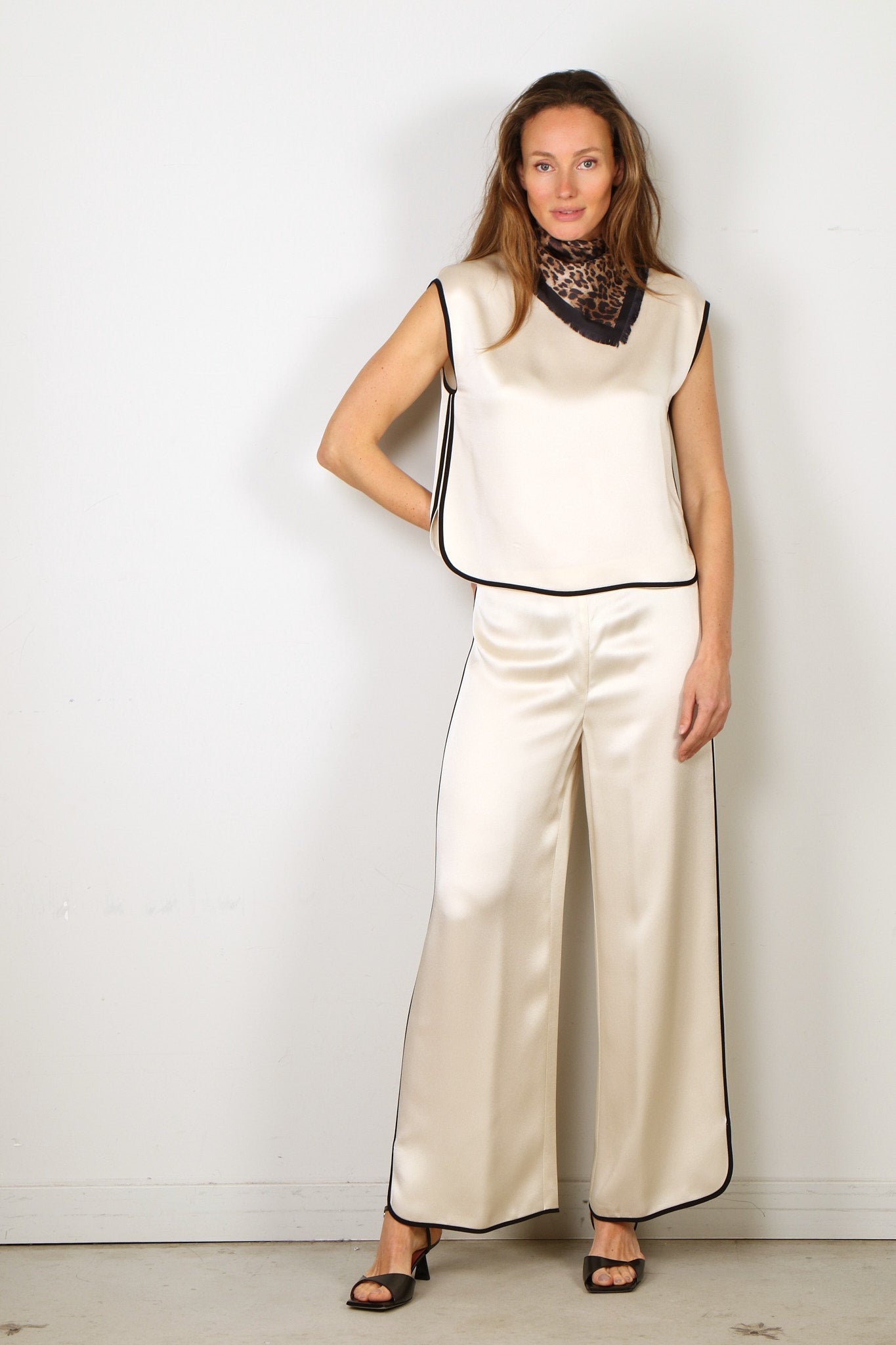 Forte_Forte Broek - Envers Satin Shiny Cropped Pants - Beurre