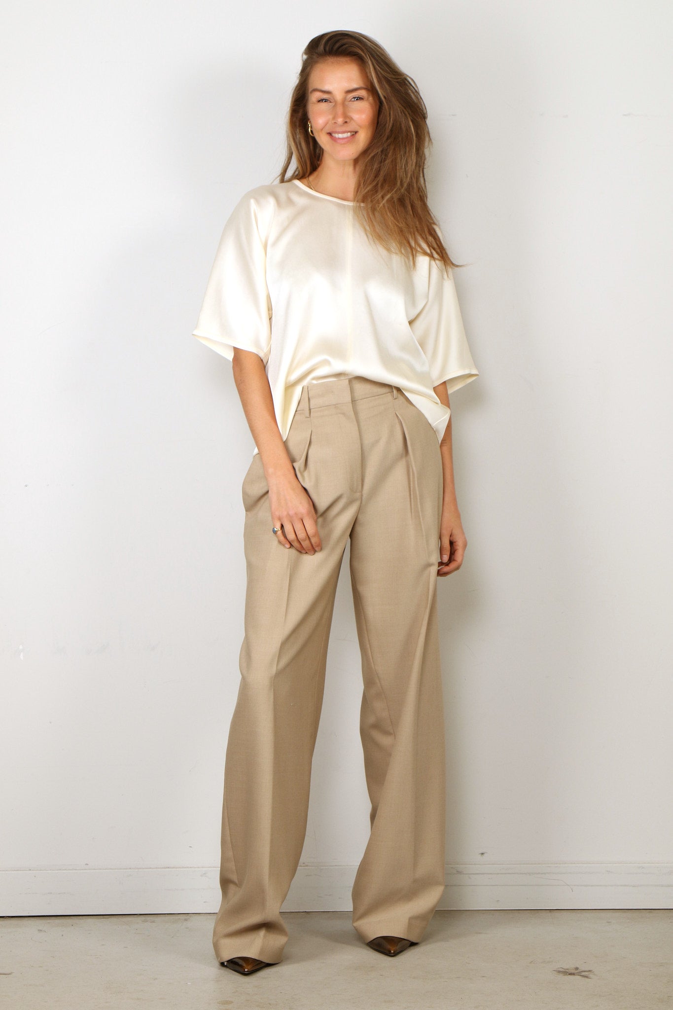Forte_Forte Broek - Grain De Poudre High Waist Pants - Sand