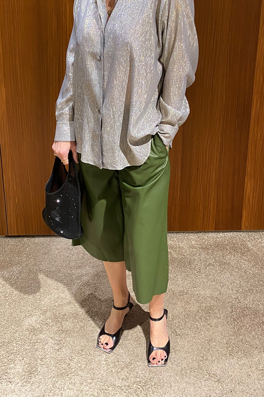 Forte_Forte Broek - Nappa Leather Cropped Pants - Khaki