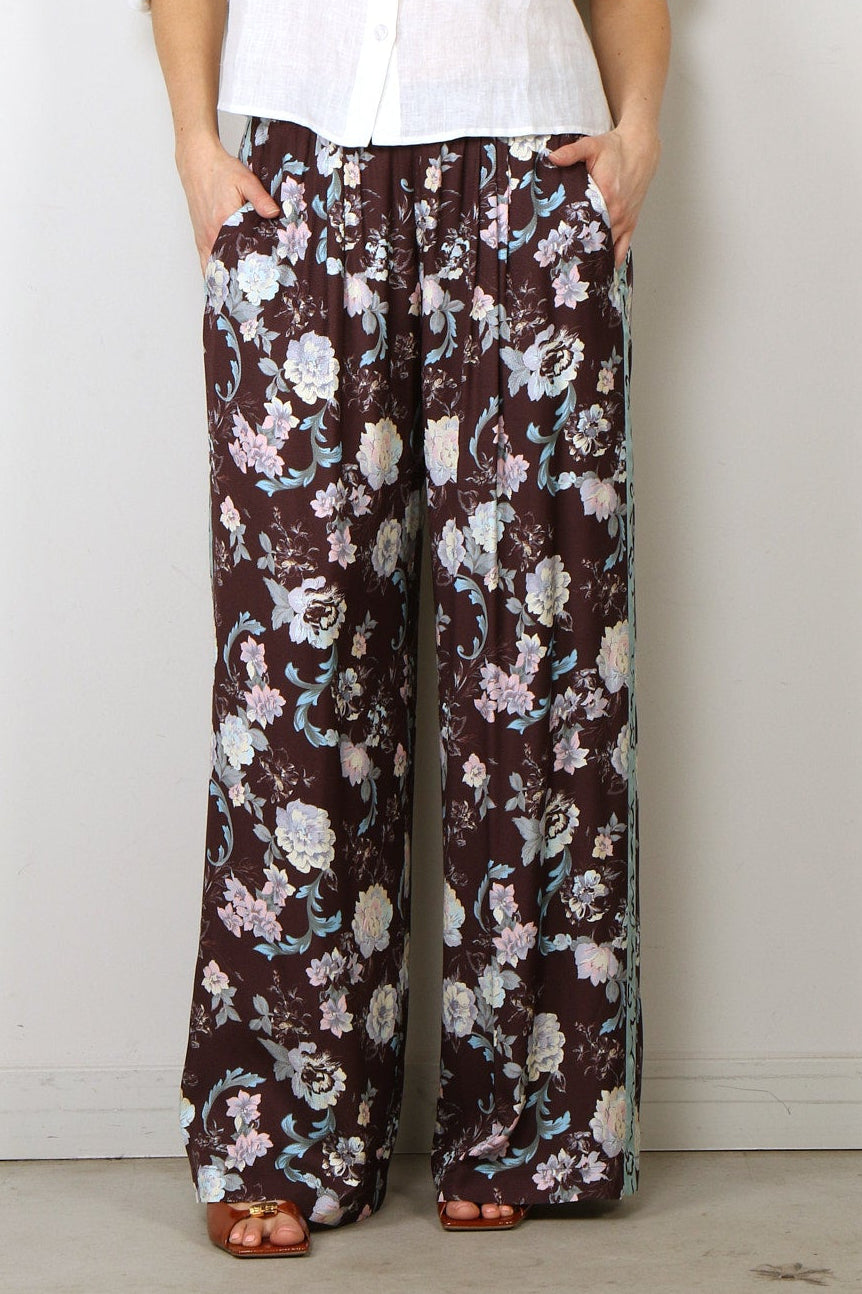 Forte_Forte Broek - 'Peonia My Love' Fluid Jacquard Elasticated Pants - Chocolat