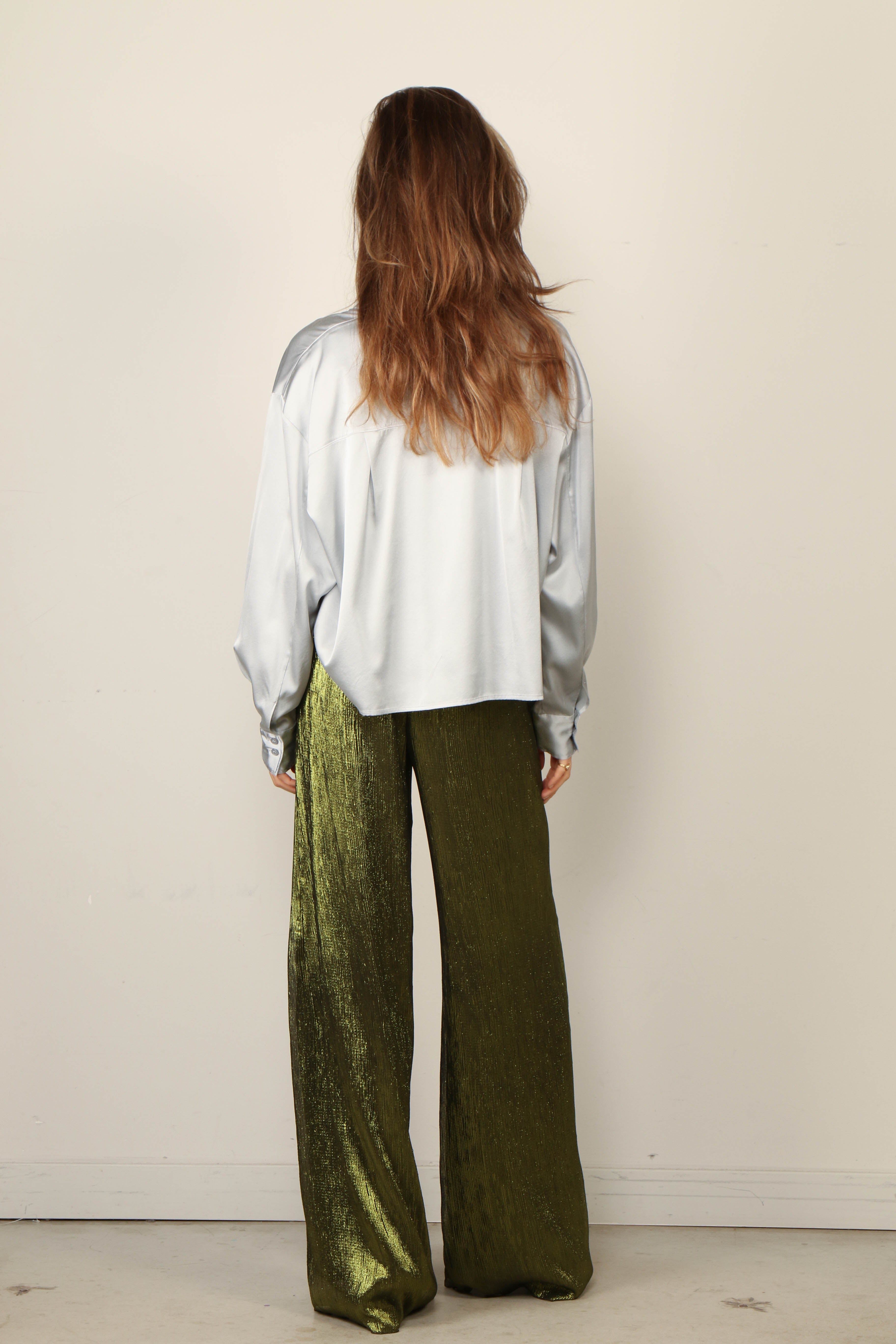 Forte_Forte Top - Stretch Silk Satin Shirt - Pearl