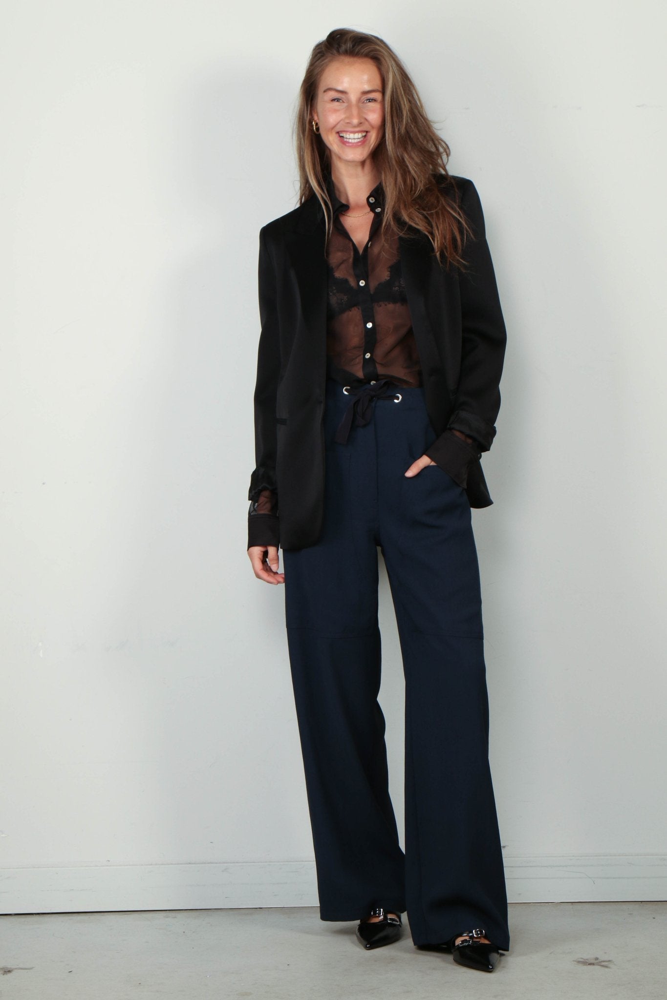 Forte_Forte Blazer - Shiny Anvers Satin Spear Collar Jacket - Nero