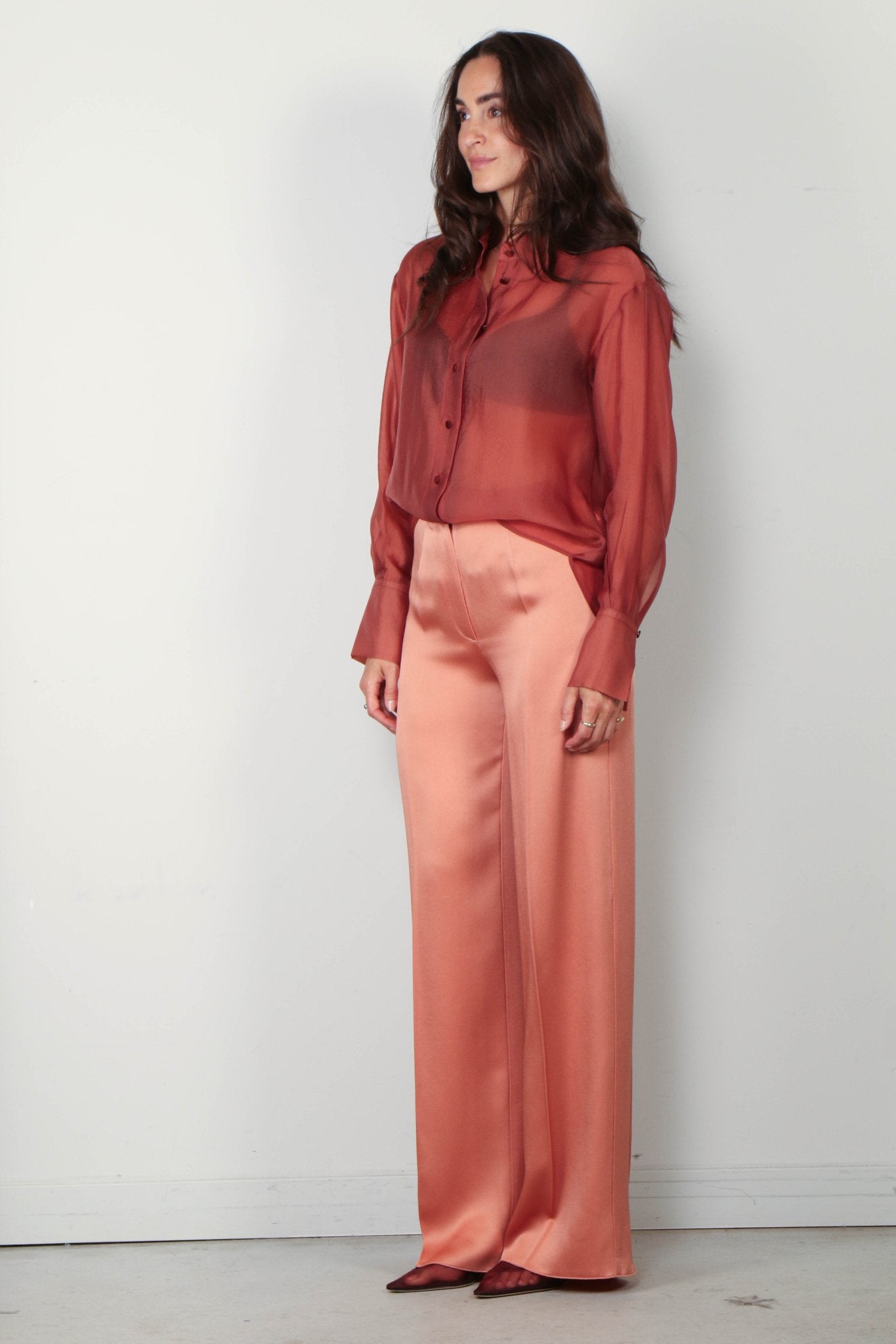 Forte_Forte Blouse - Contemporary Organza Masculine Shirt - Cameo