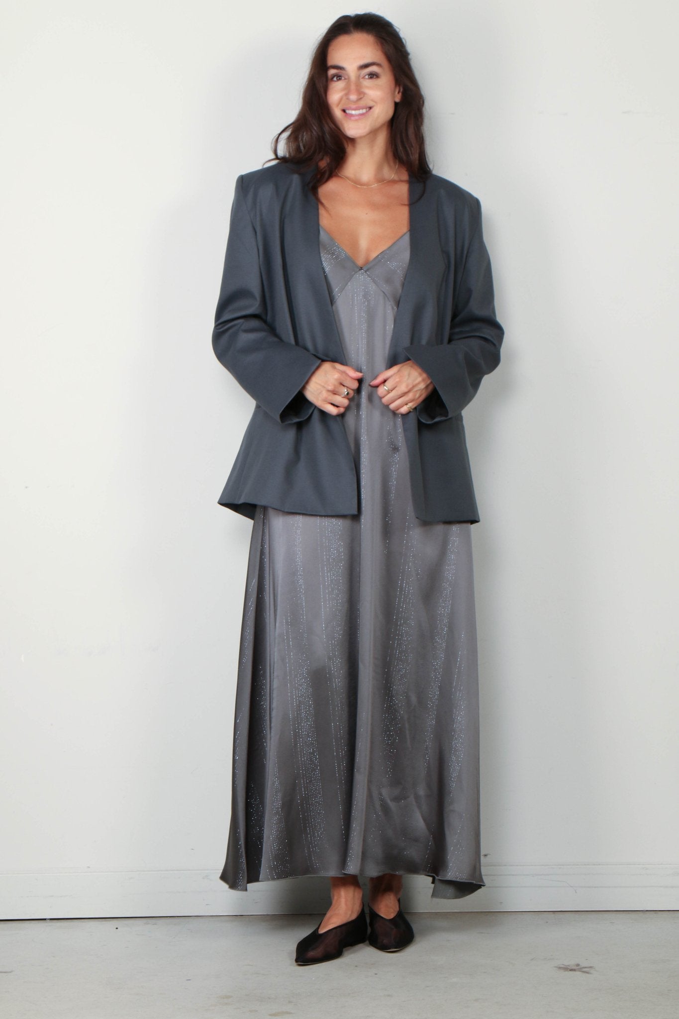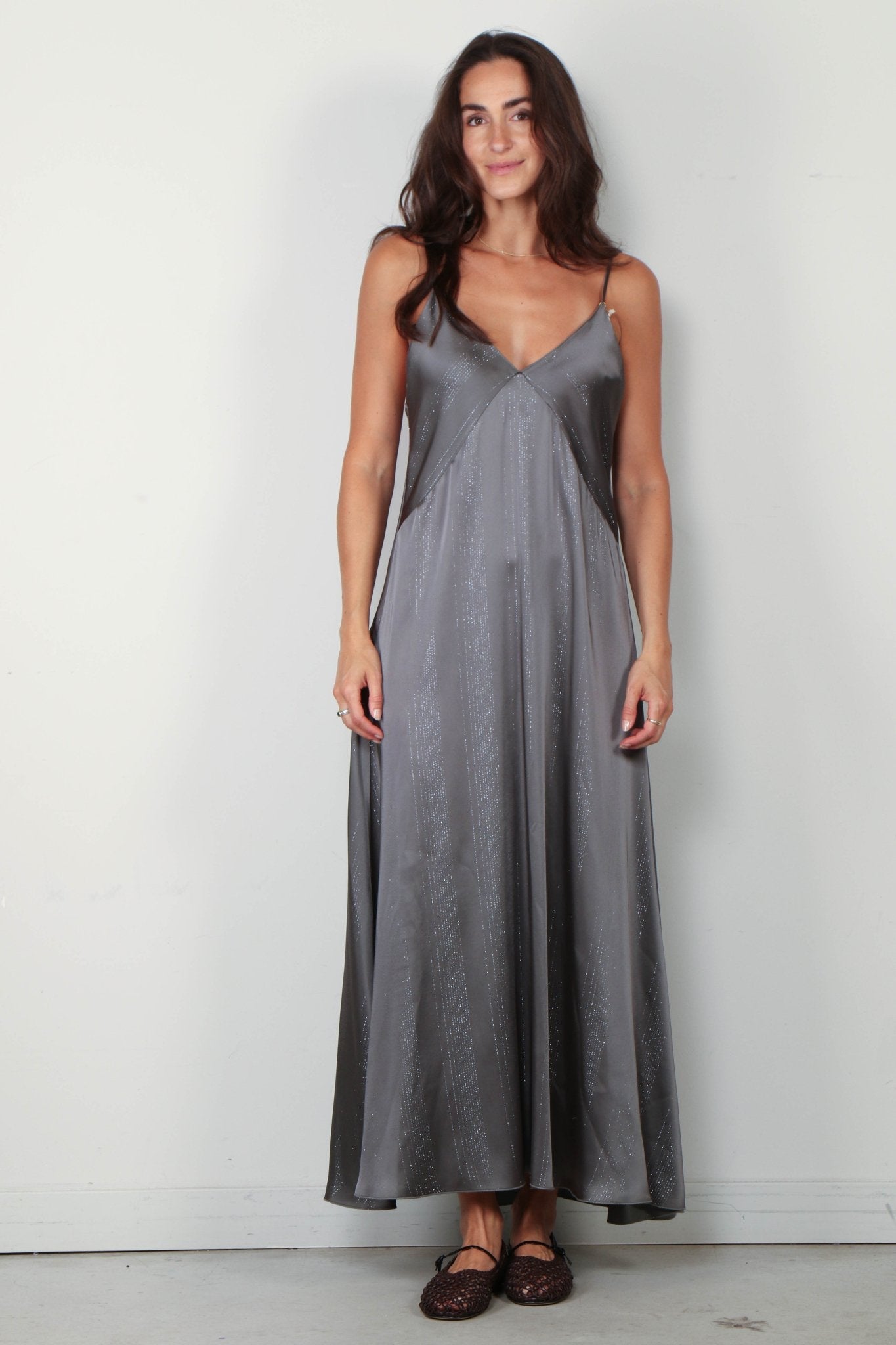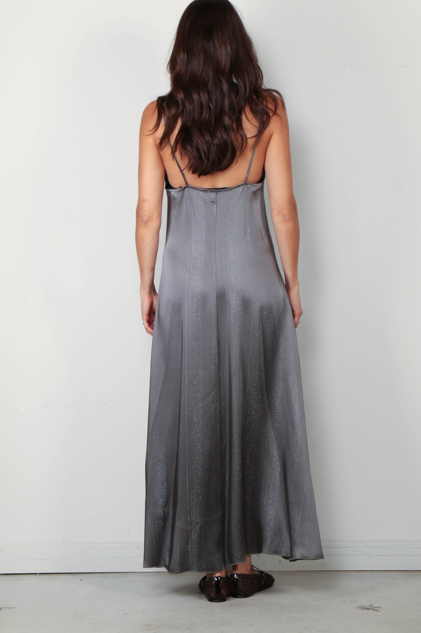 Forte_Forte Jurk - Silver Pinstripe Satin Slipdress - Ombra