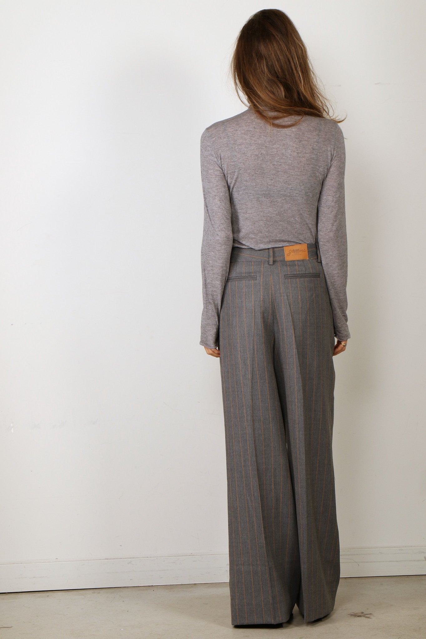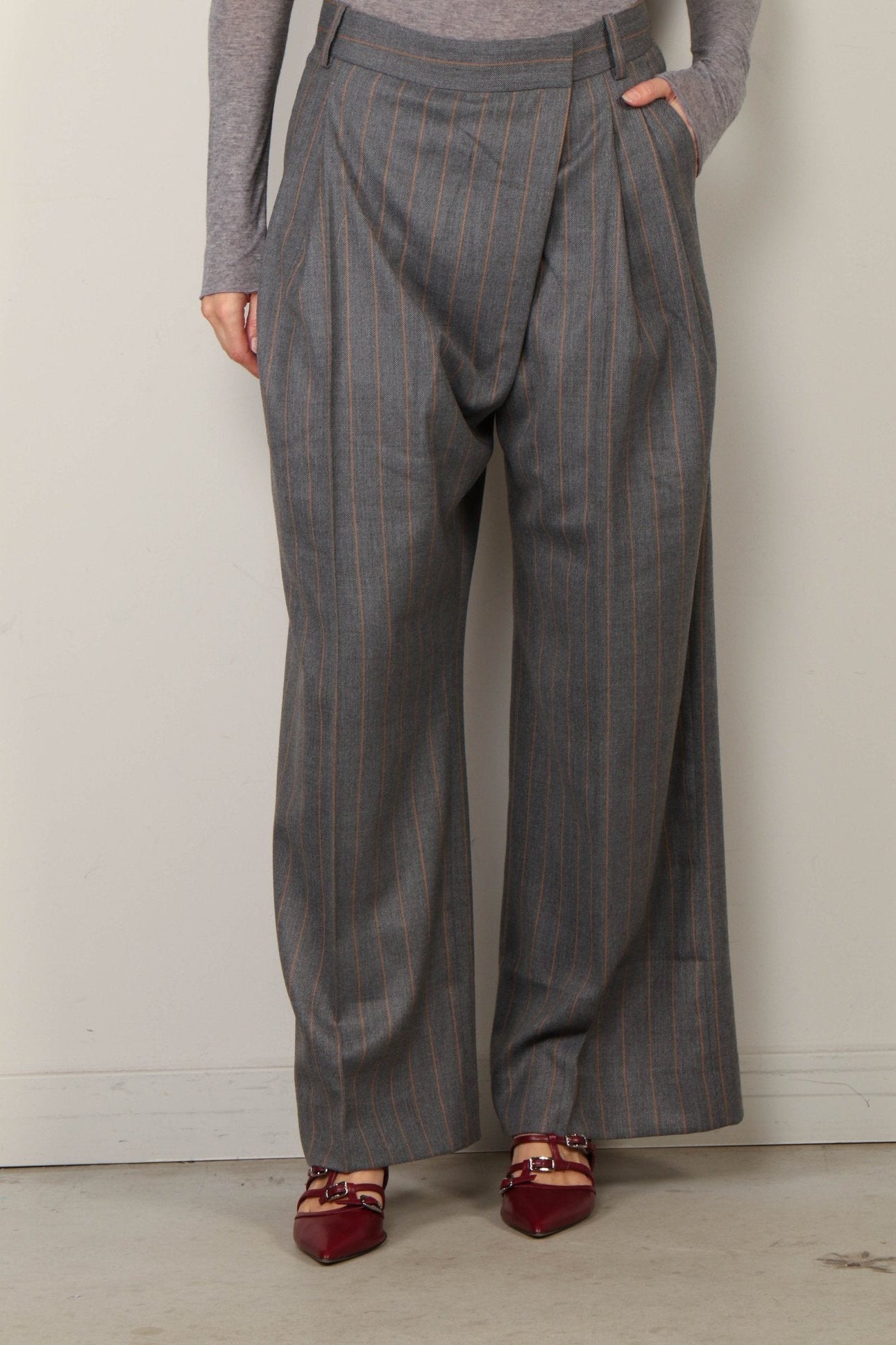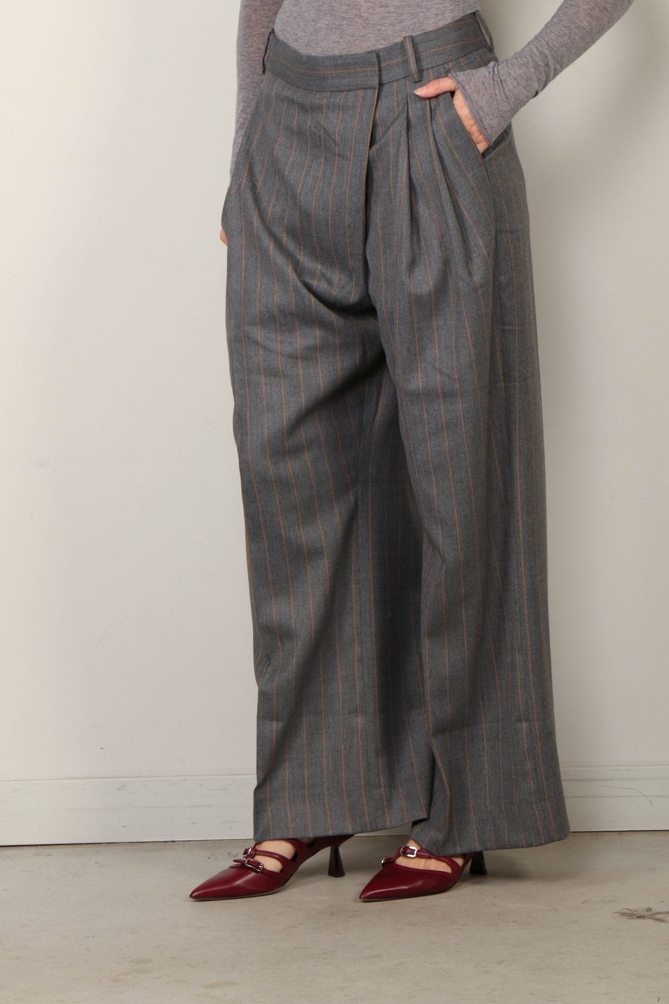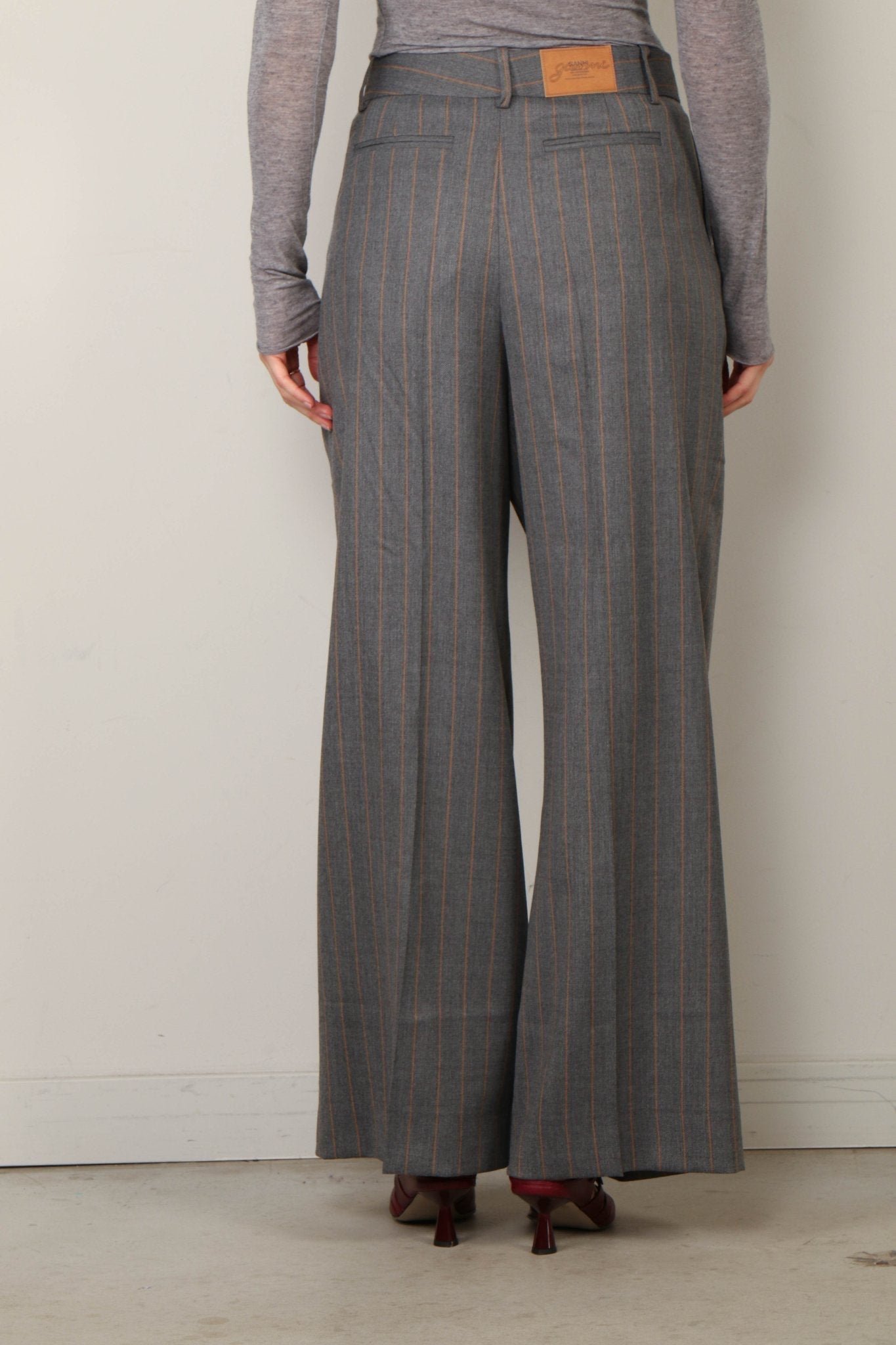 Ganni Broek - Brushed Wool Stripe Mid Waist Pants - Pewter