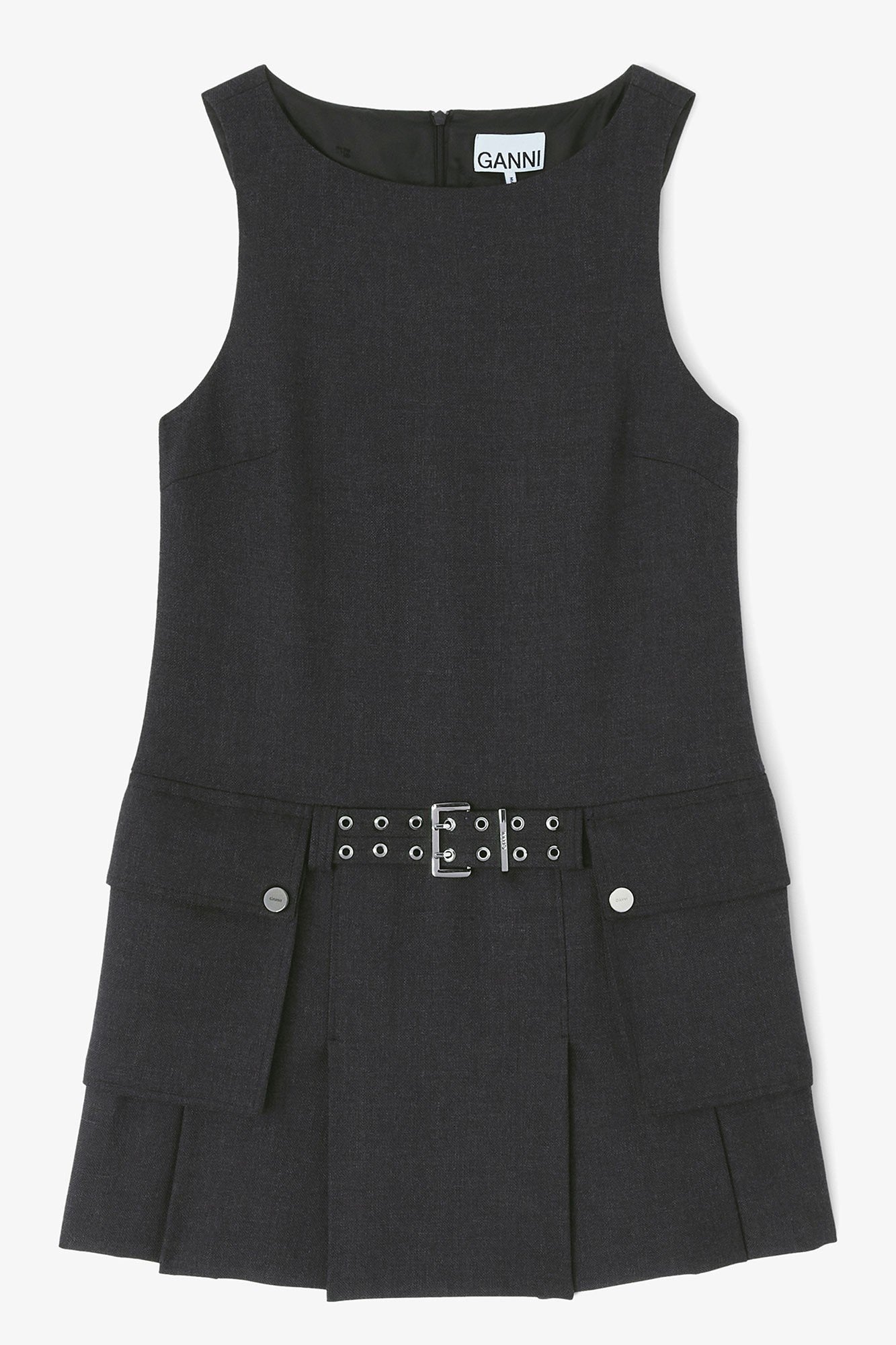 Ganni Jurk - Wool Suiting Belted Mini Dress - Phantom