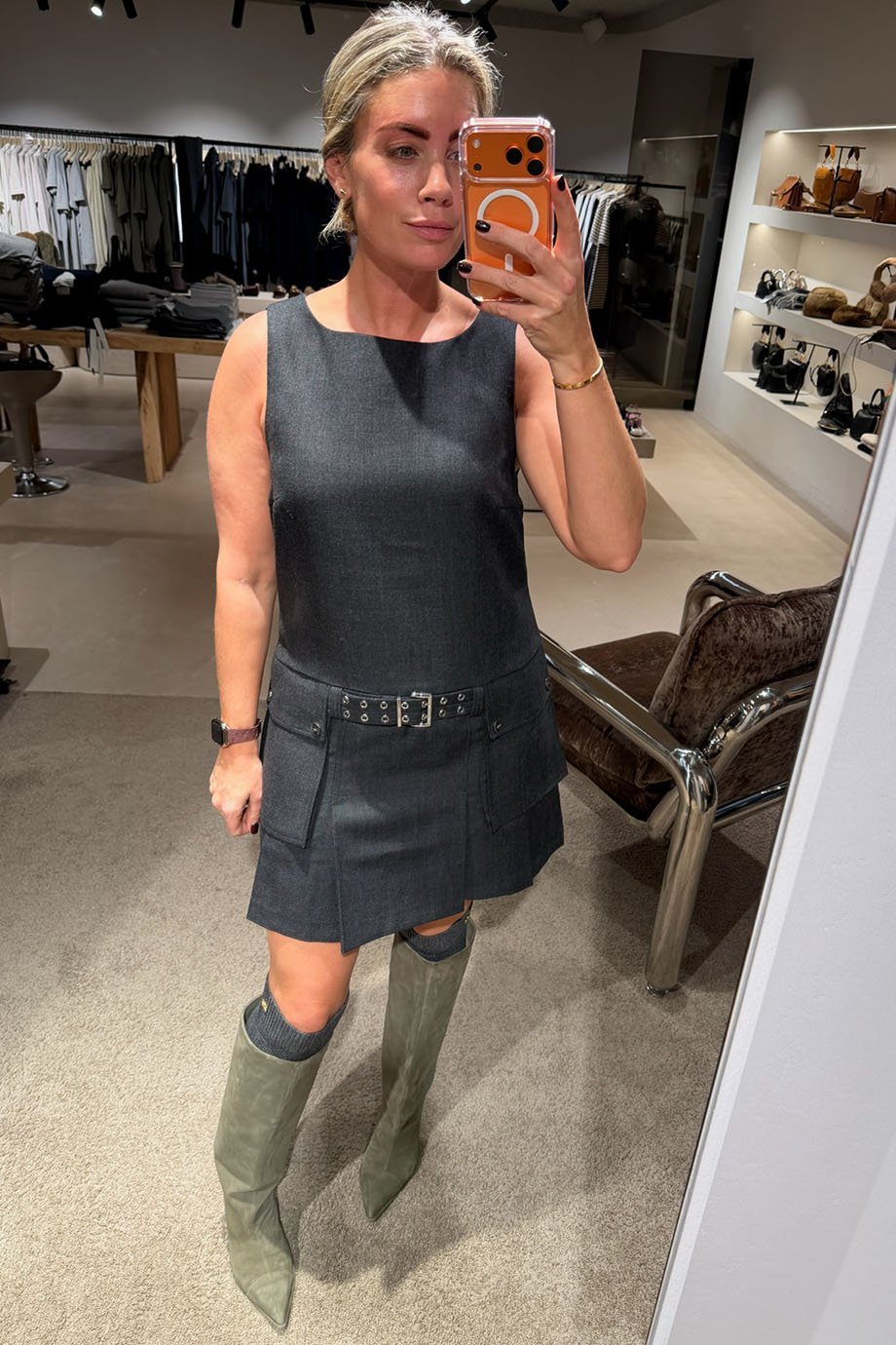 - Het model is 1.78m lang en draagt maat 38