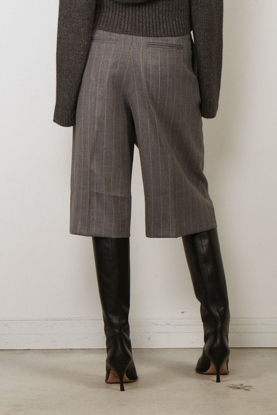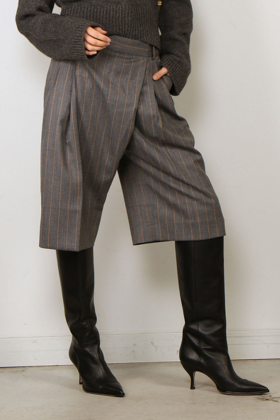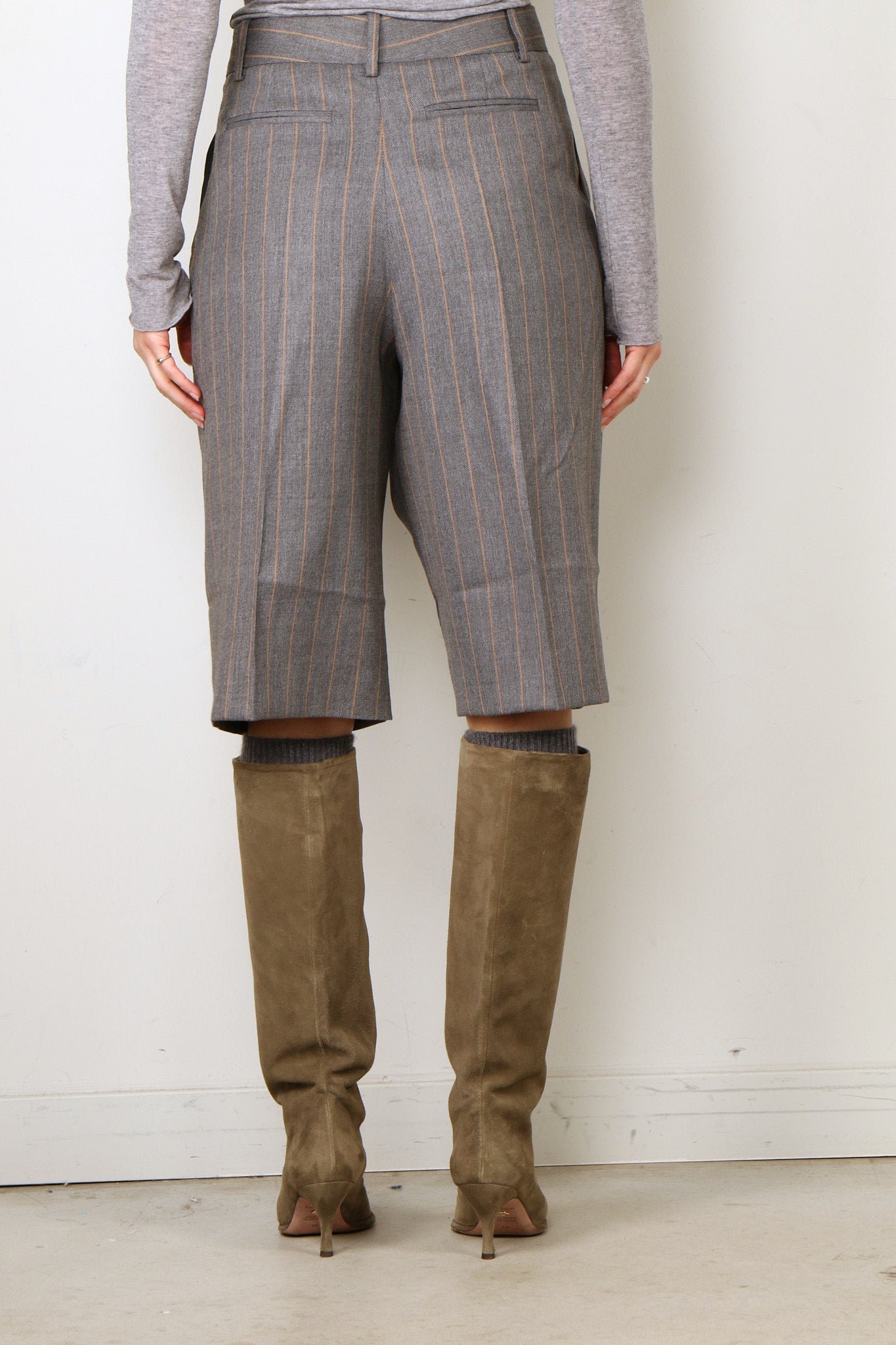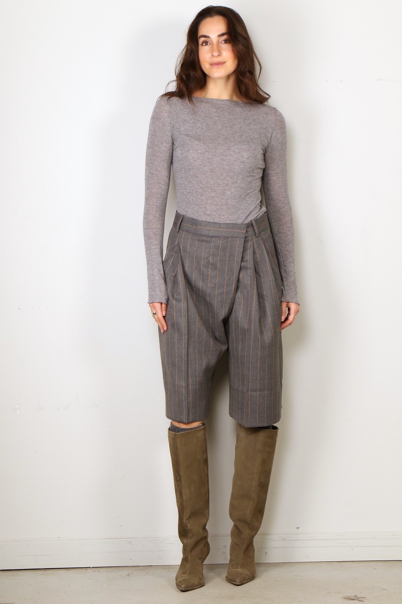 Ganni Short - Wool Stripe Wrap Shorts - Pewter Melange