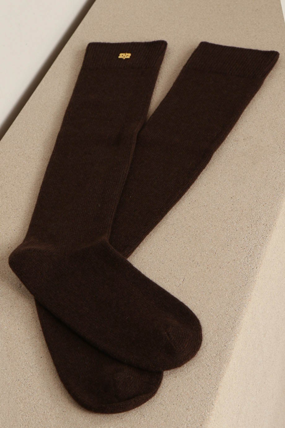 Ganni Sokken - Wool Yak Mix High Socks - Chocolate Plum