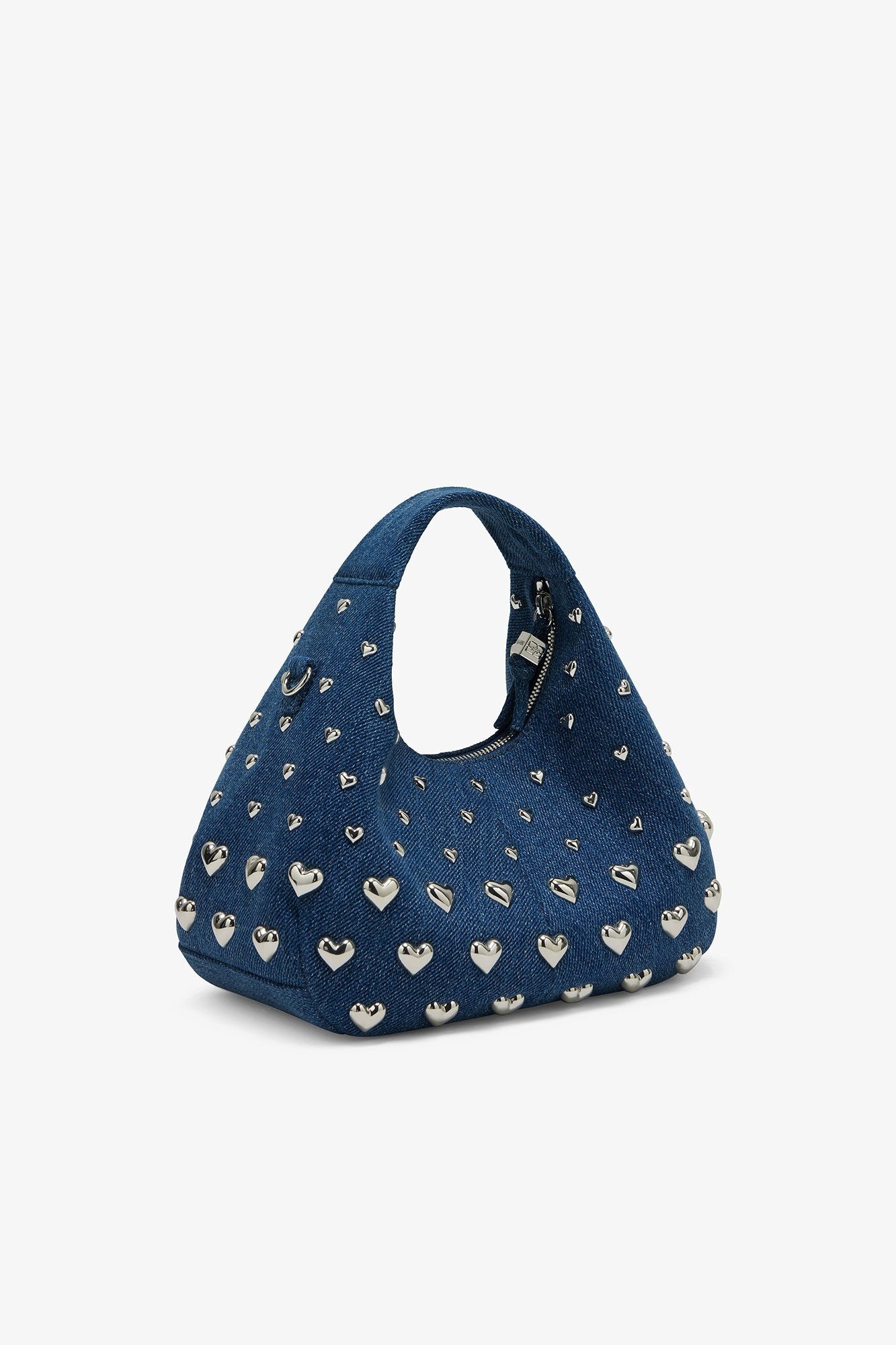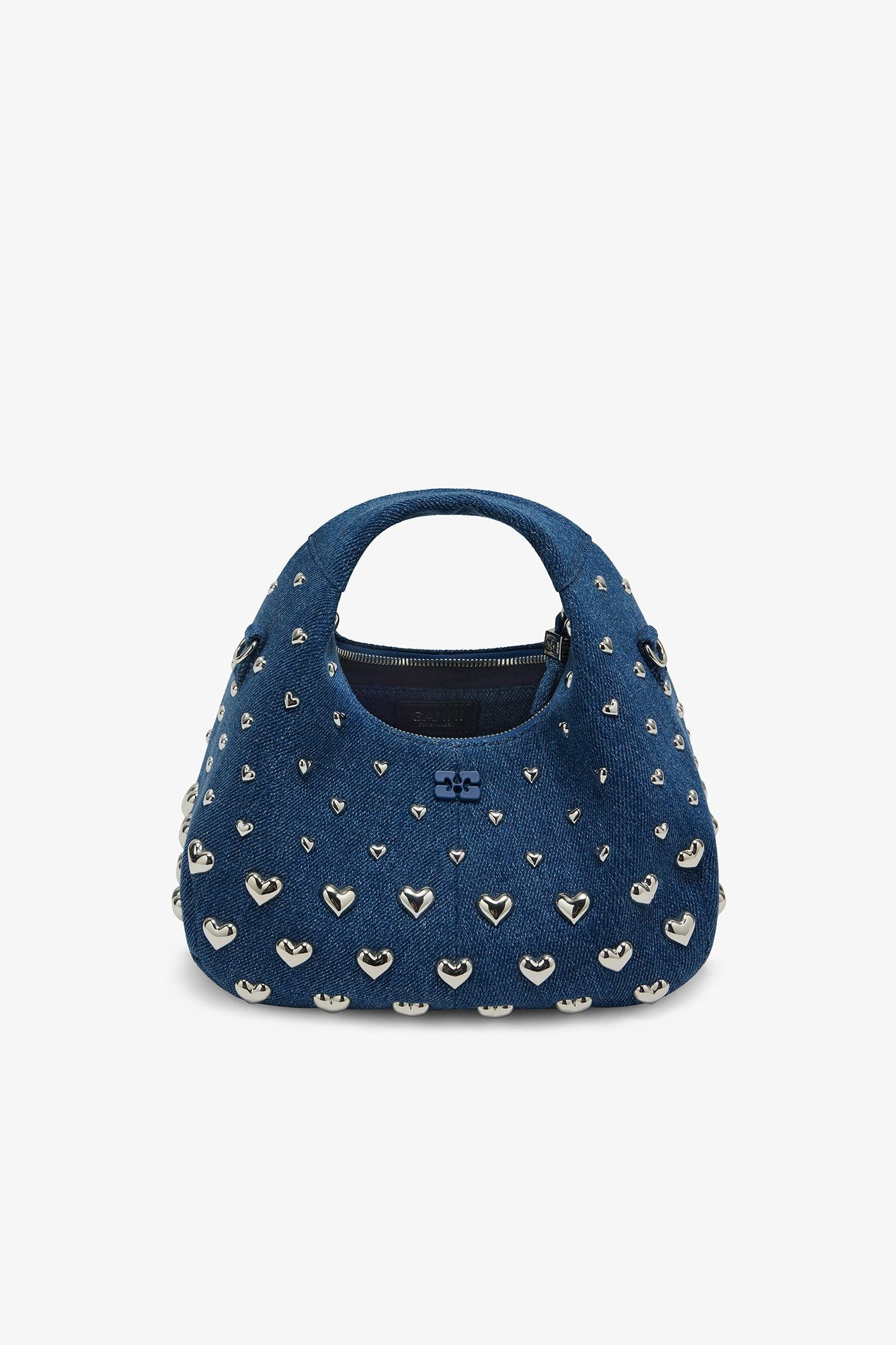 Ganni Tas - Hobo Mini Heart Stud Denim - Navy Peony