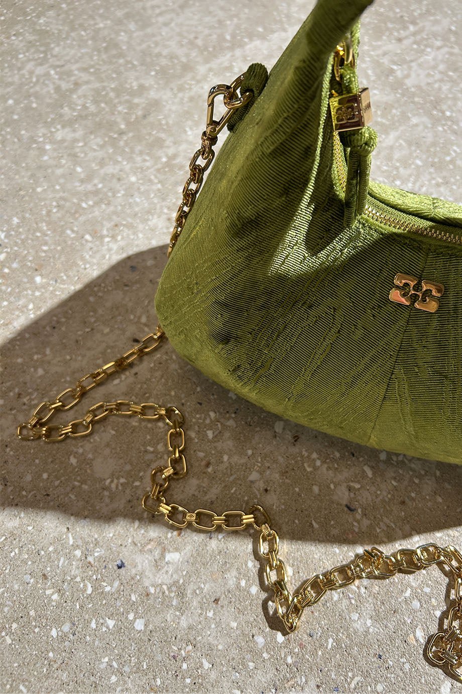 Ganni Tas - Hobo Mini Velvet Moire - Spinach Green