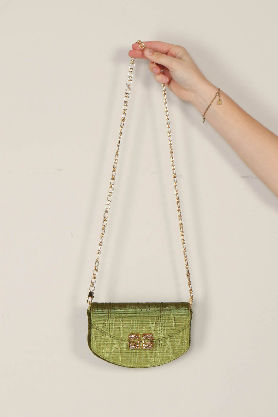Ganni Tas - Lulu Wallet On Chain Velvet Moire - Spinach Green