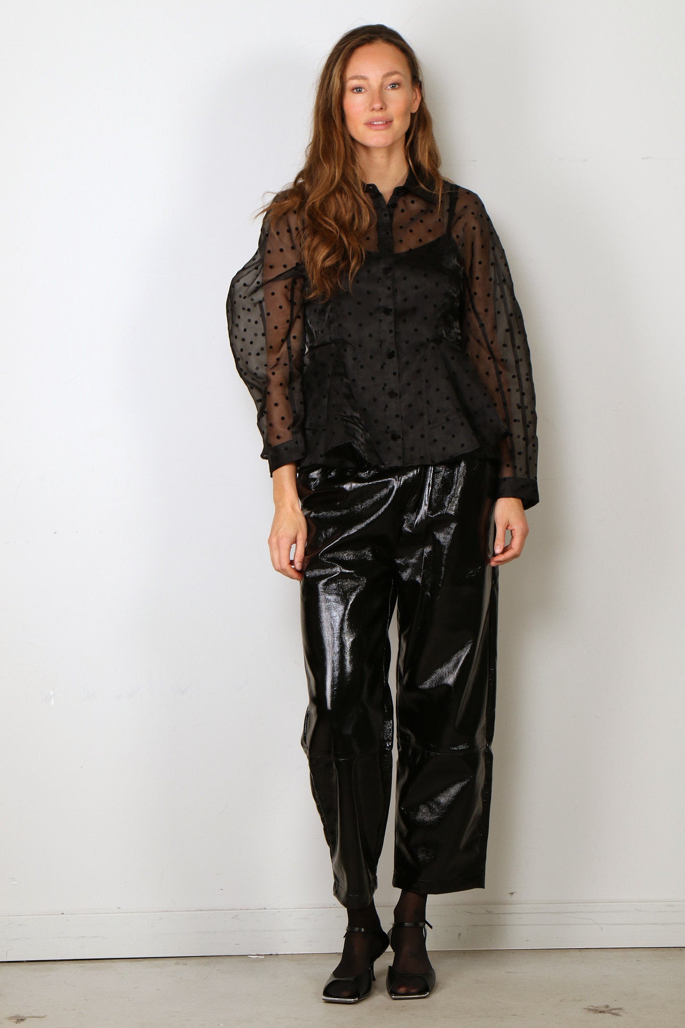 Ganni Top - Flocked Organza Peplum Shirt - Black