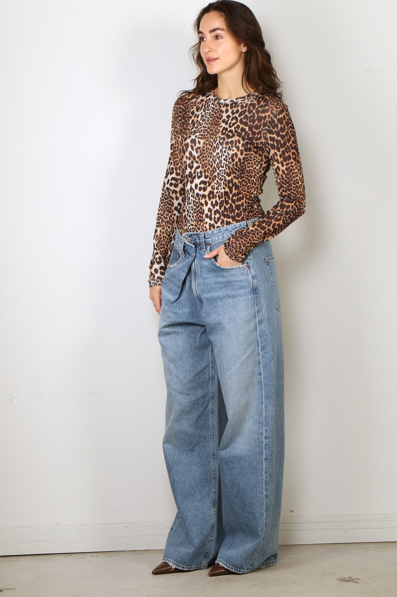 Ganni Top - Printed Marl Mesh Long Sleeve - Leopard