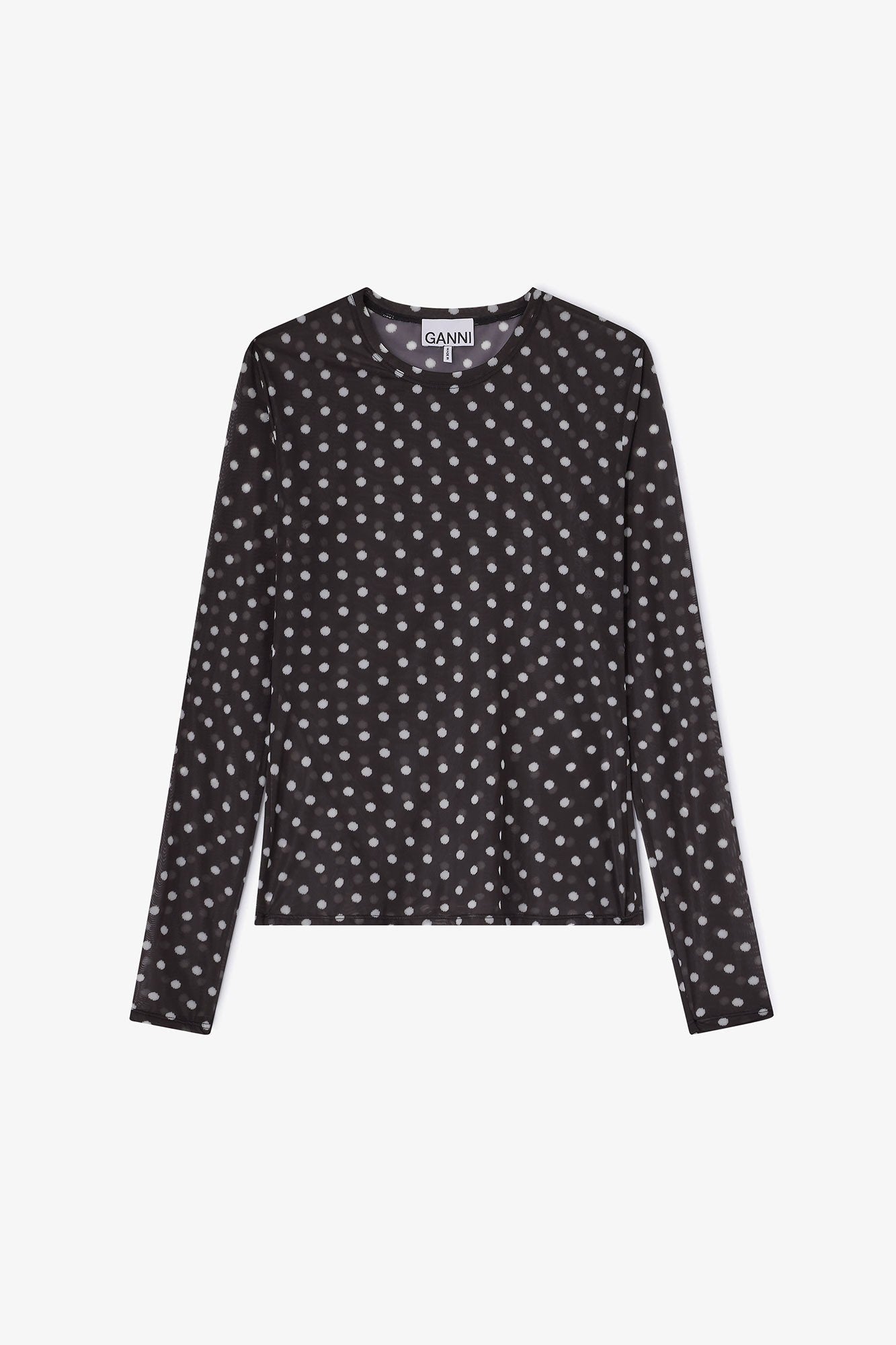 Ganni Top - Printed Sheer Jersey Longsleeve - Black