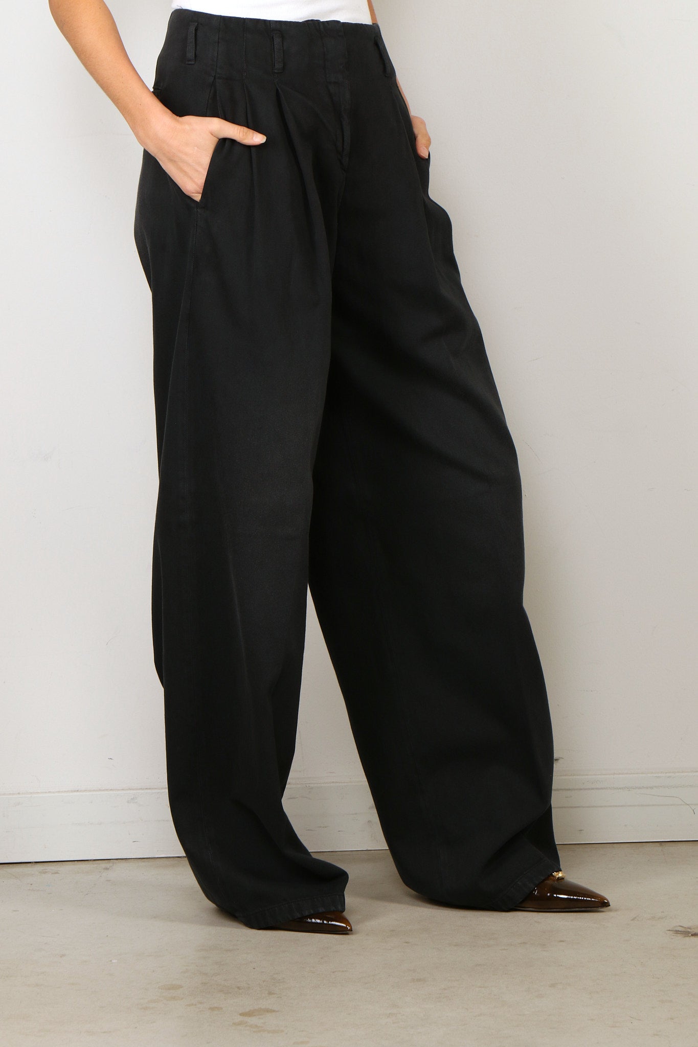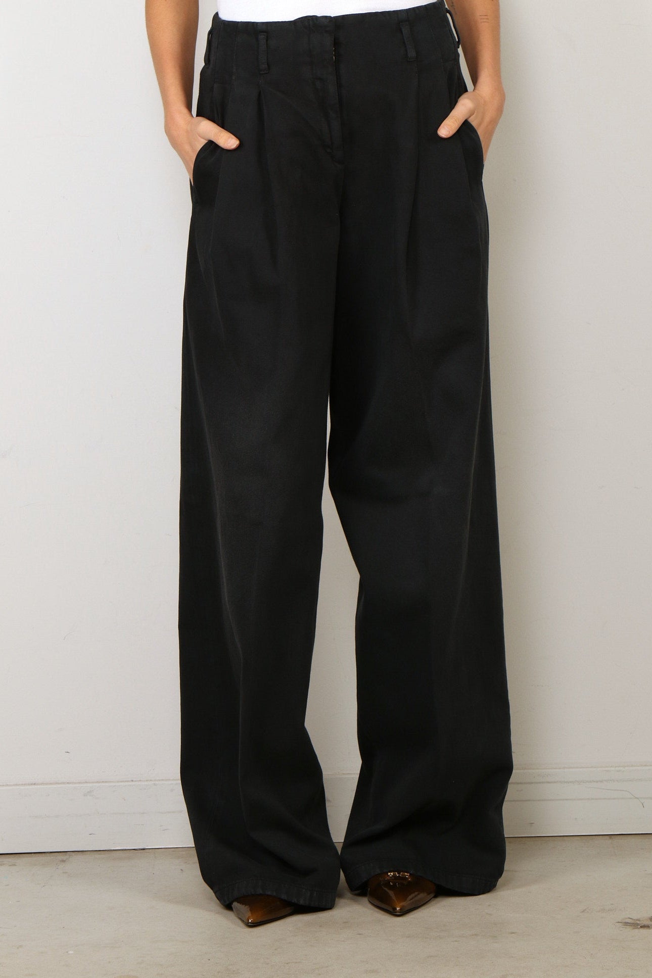 Golden Goose Jeans - Journey W's Denim Pant Wide Leg Flavia Cotton Denim Lived Wash - Black
