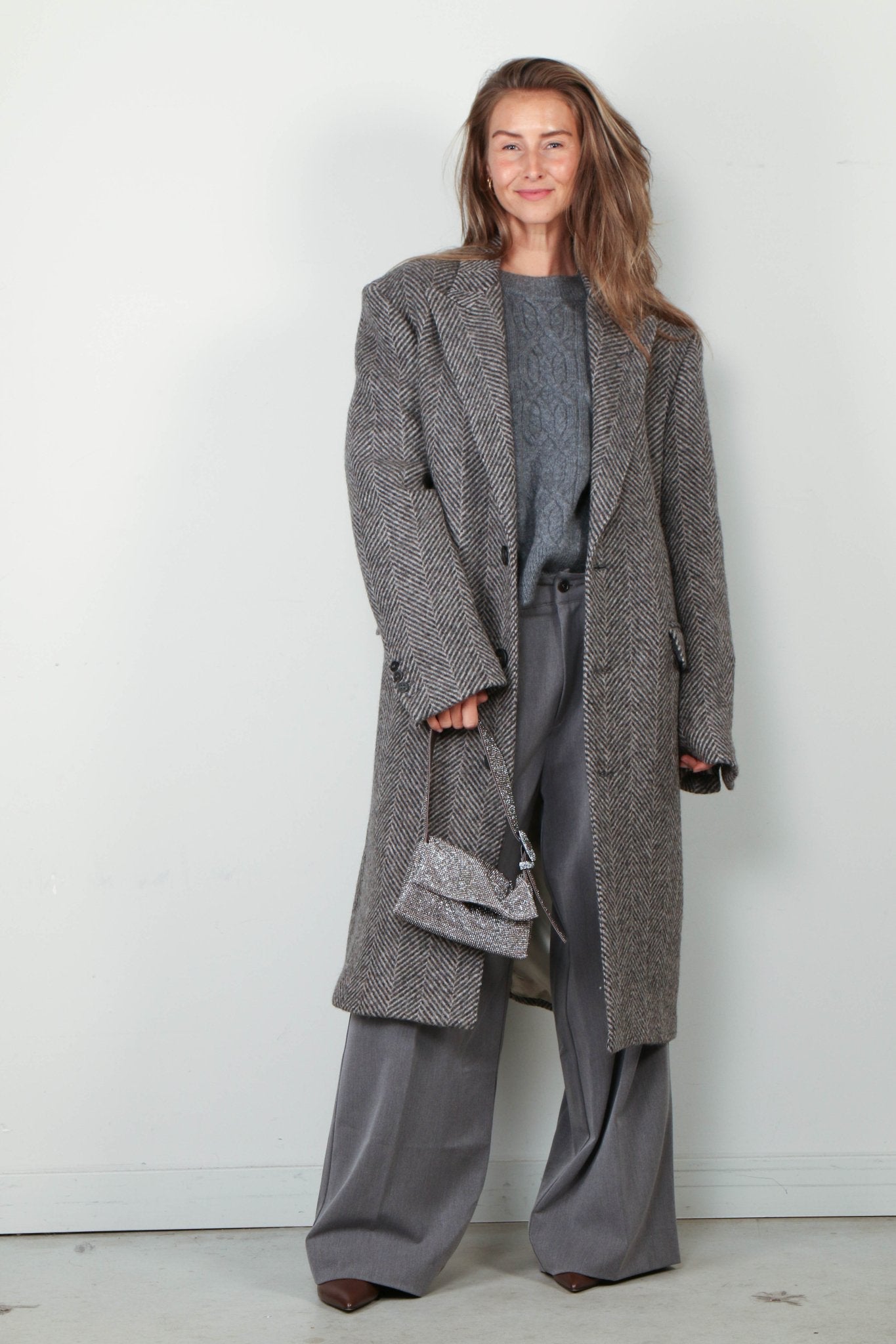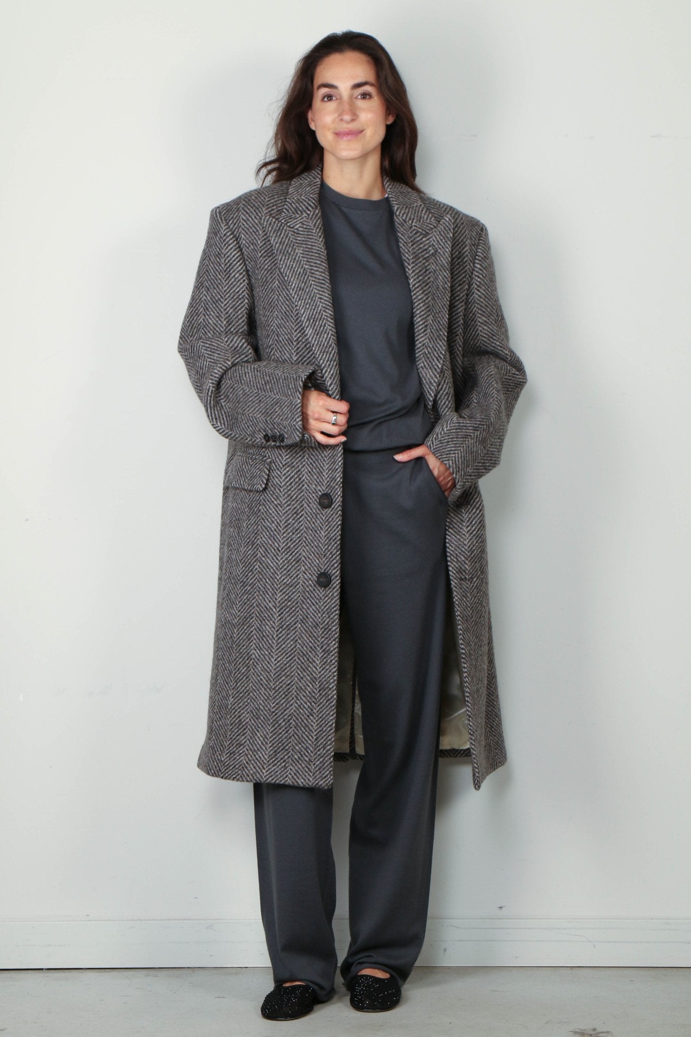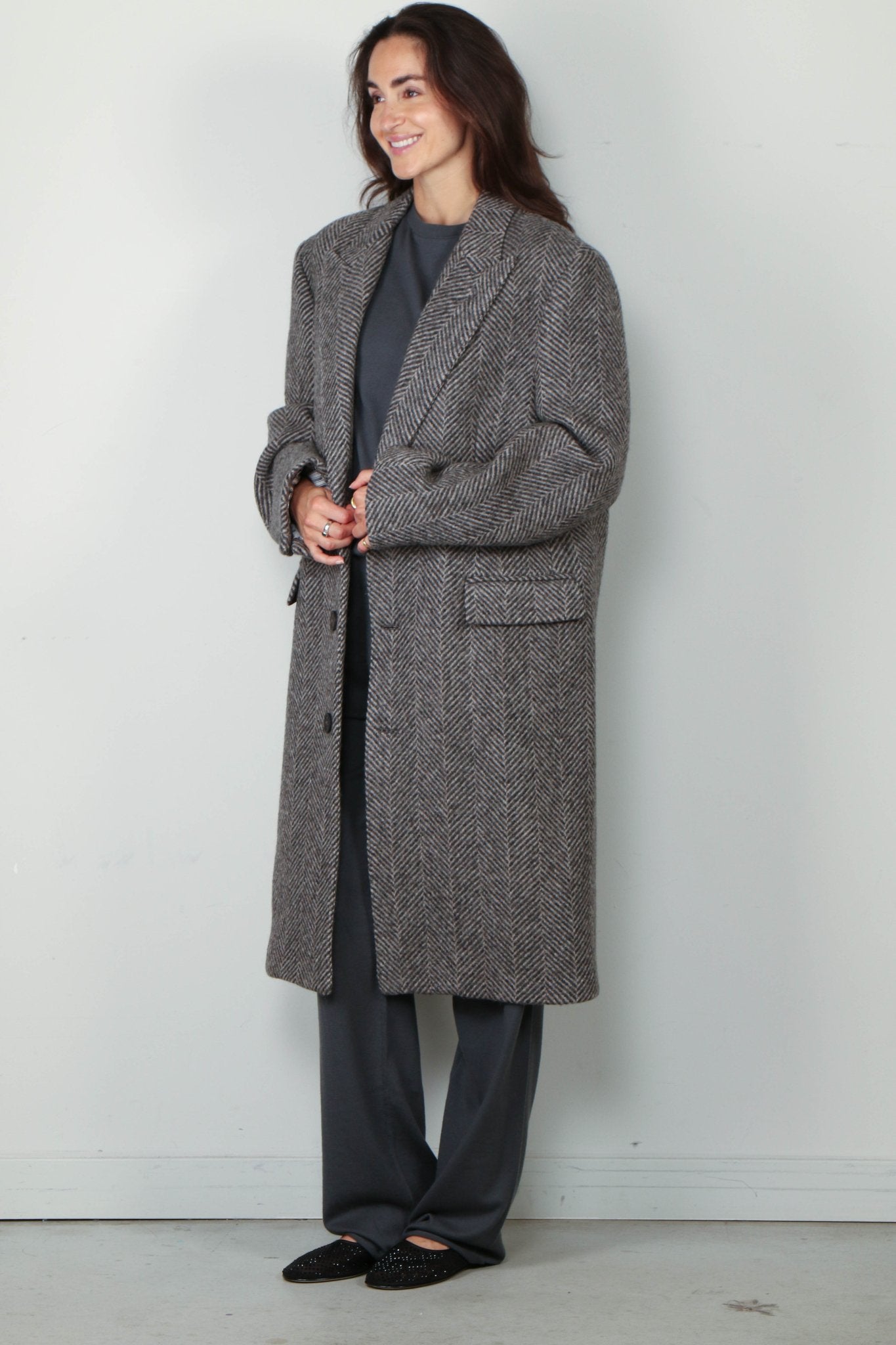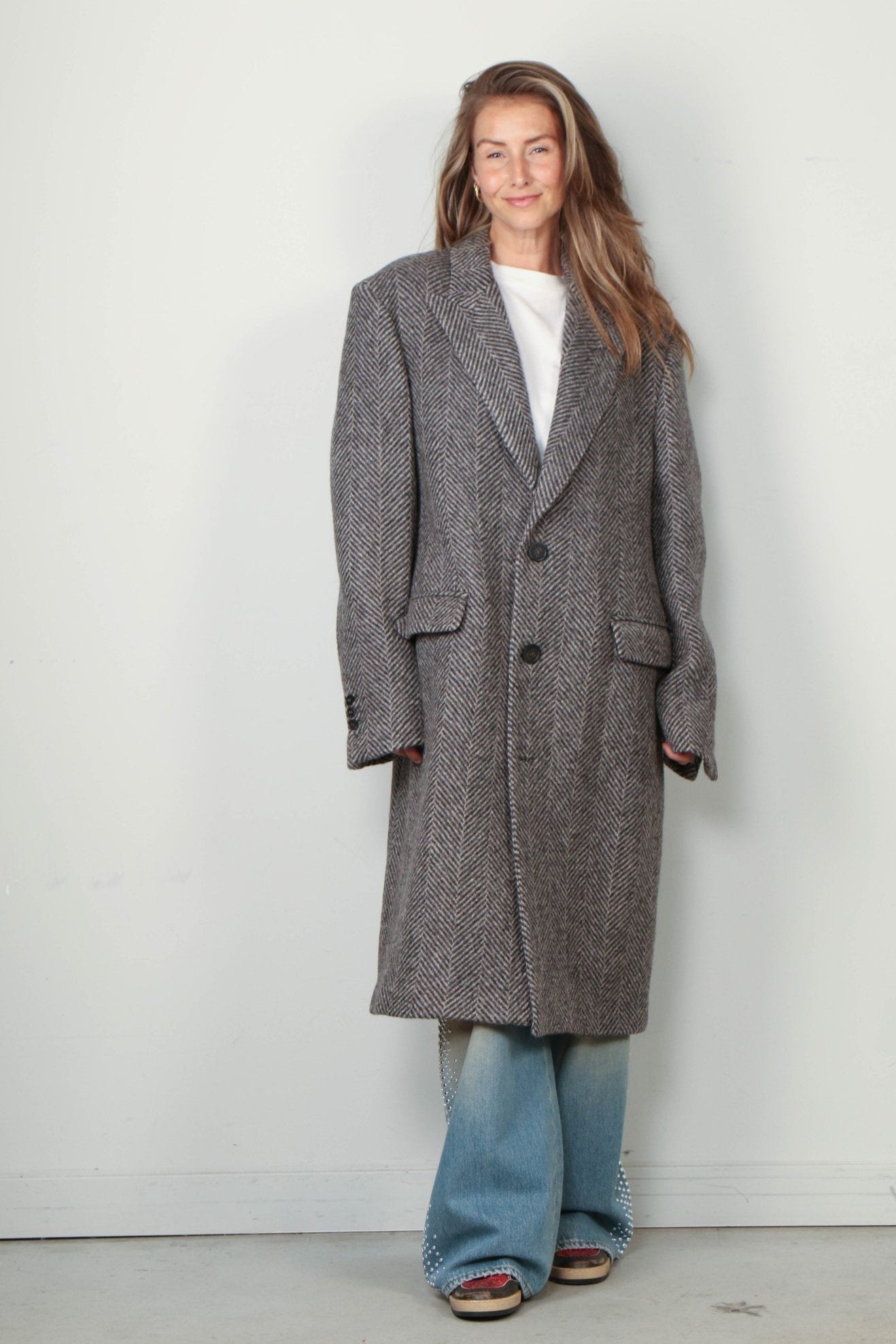 Golden Goose Jas - Single Breasted Chevron Wool - Beige Antracite