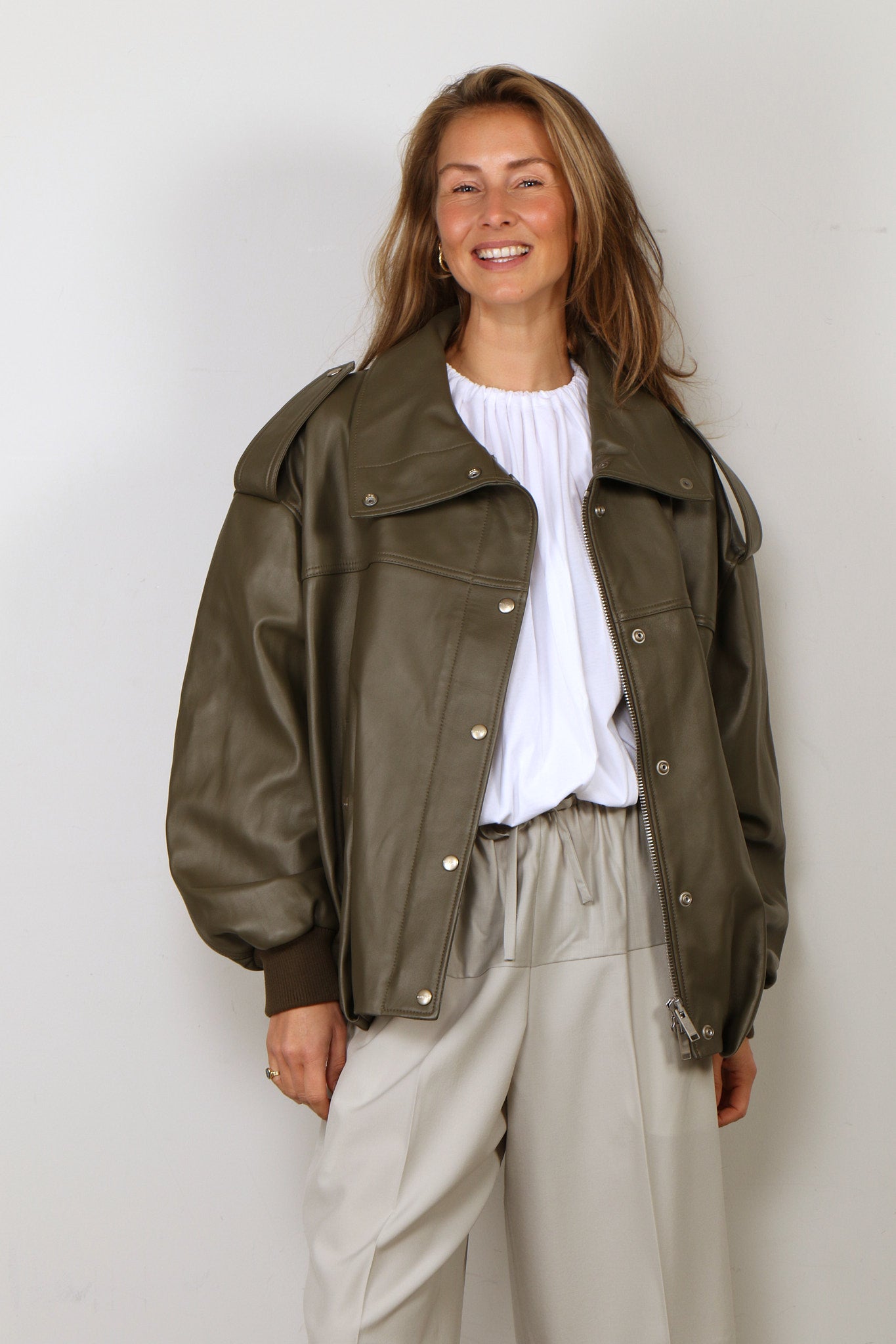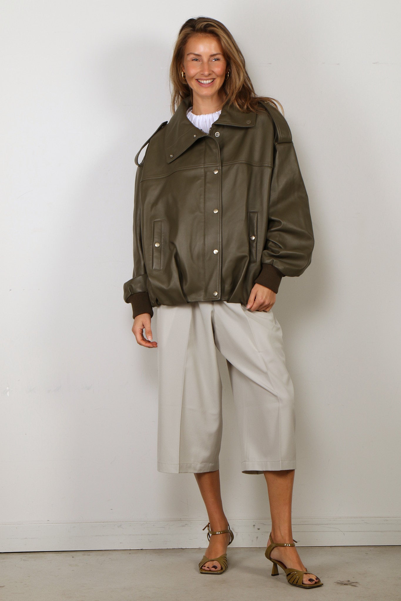Halfboy Jacket - Smooth Leather Bomber - Green