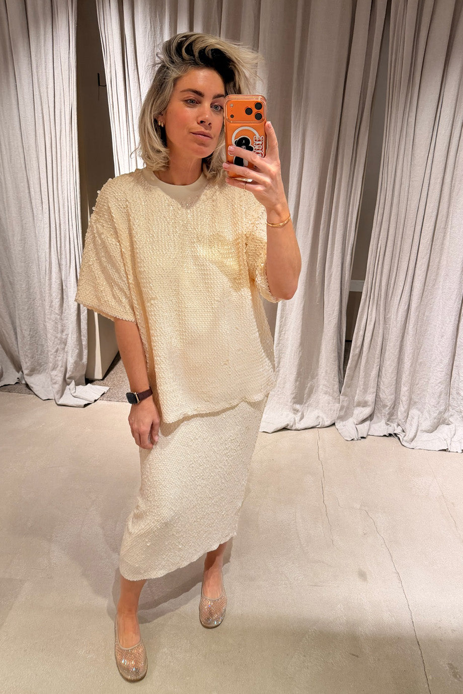 - Het model is 1.73m en draagt maat 38