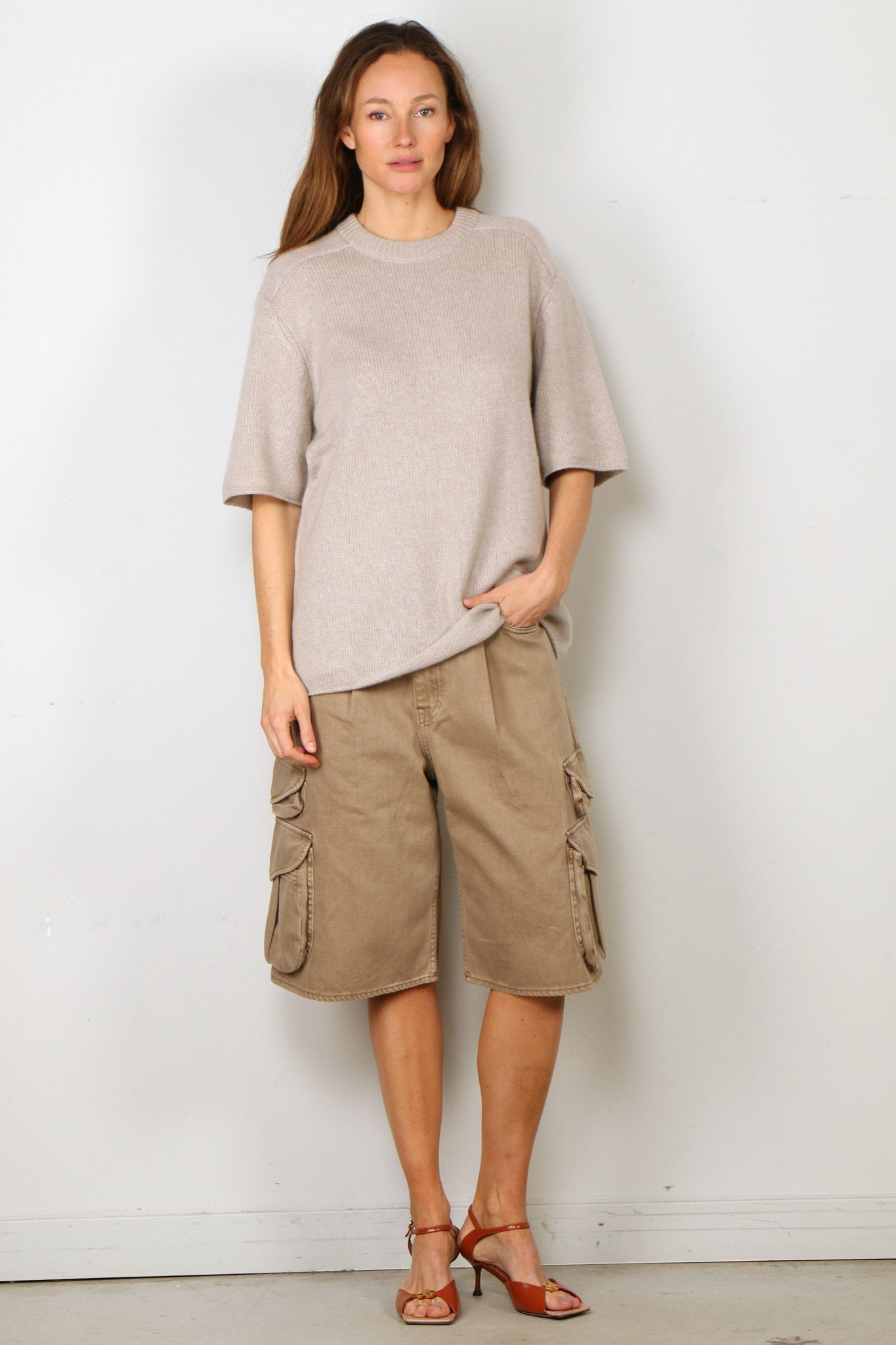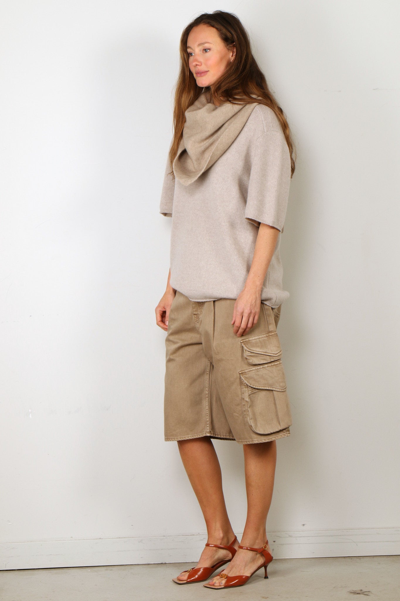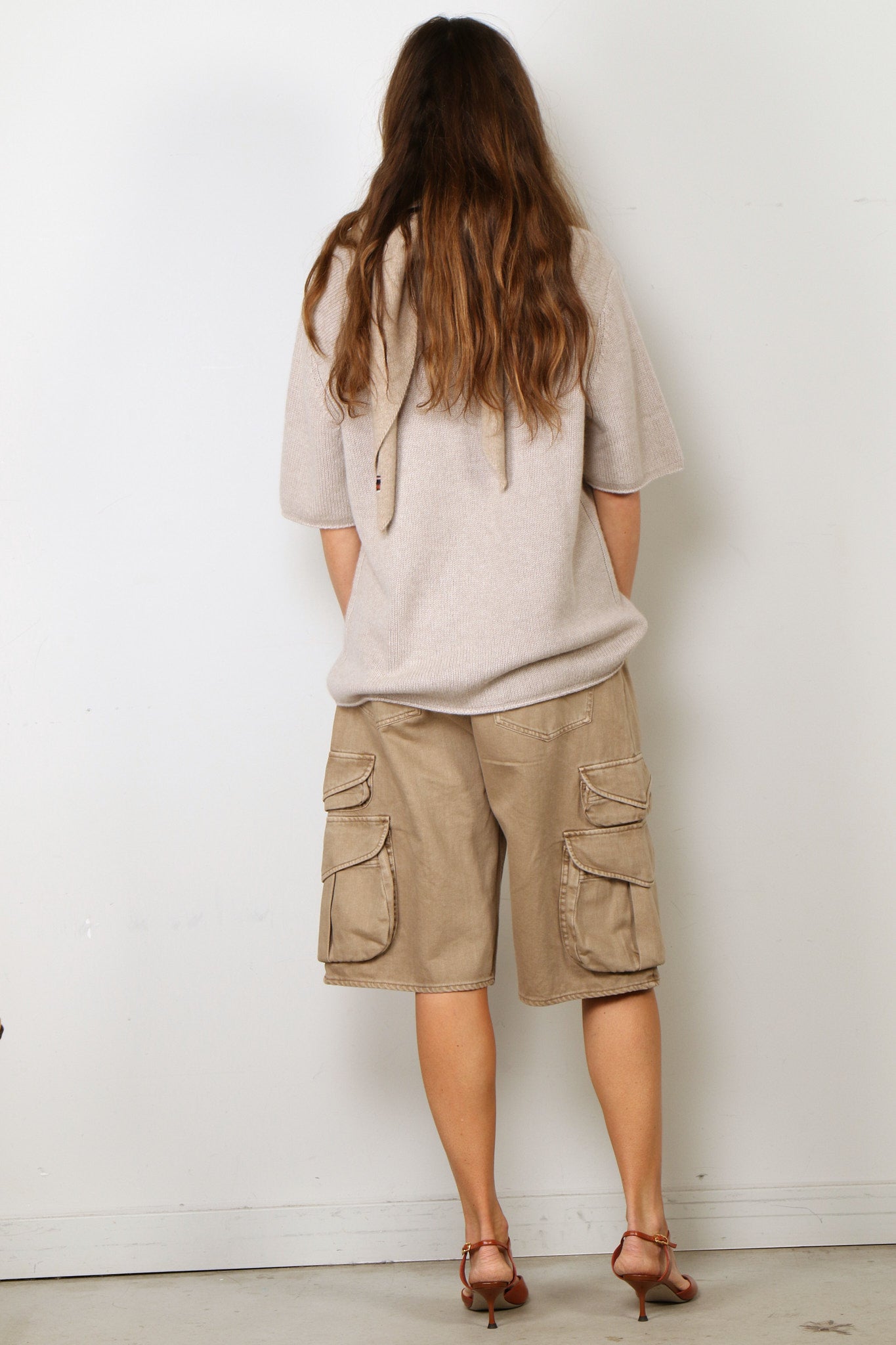 - Het model is 1.79m lang en draagt maat 1 (S)