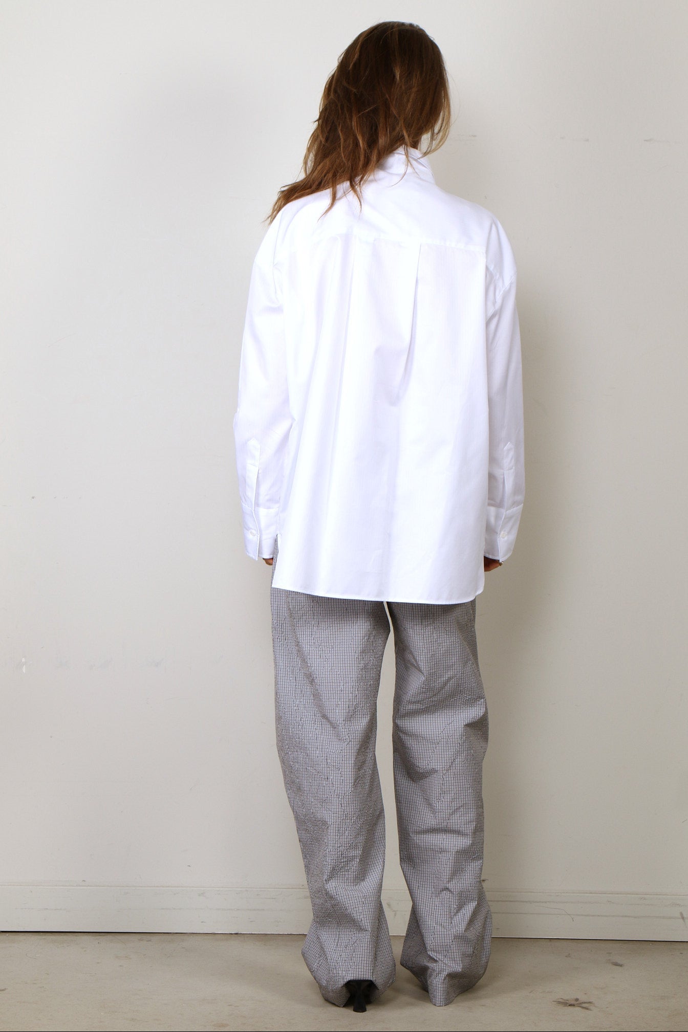 - Het model is 1.73m lang en draagt maat S