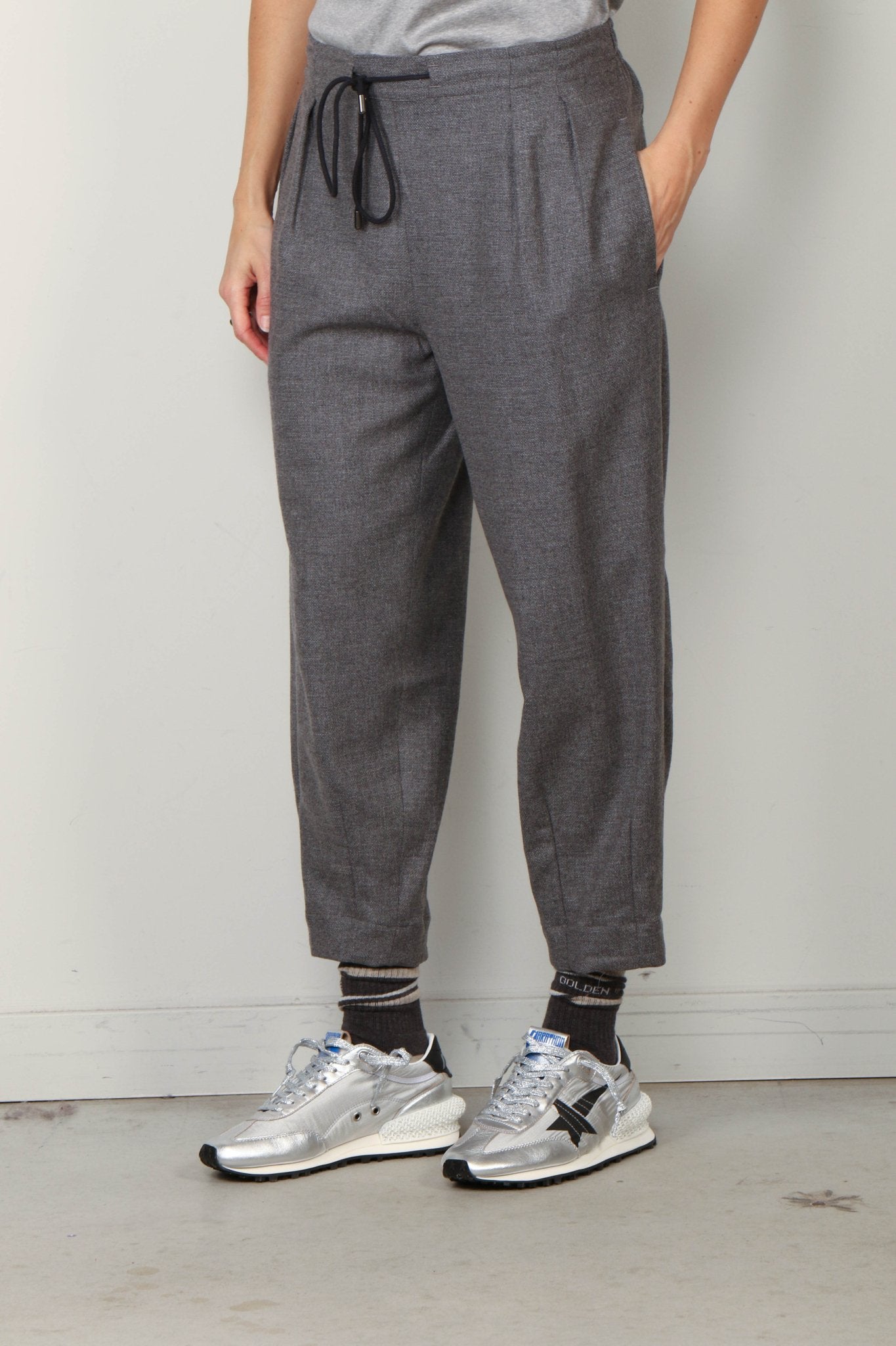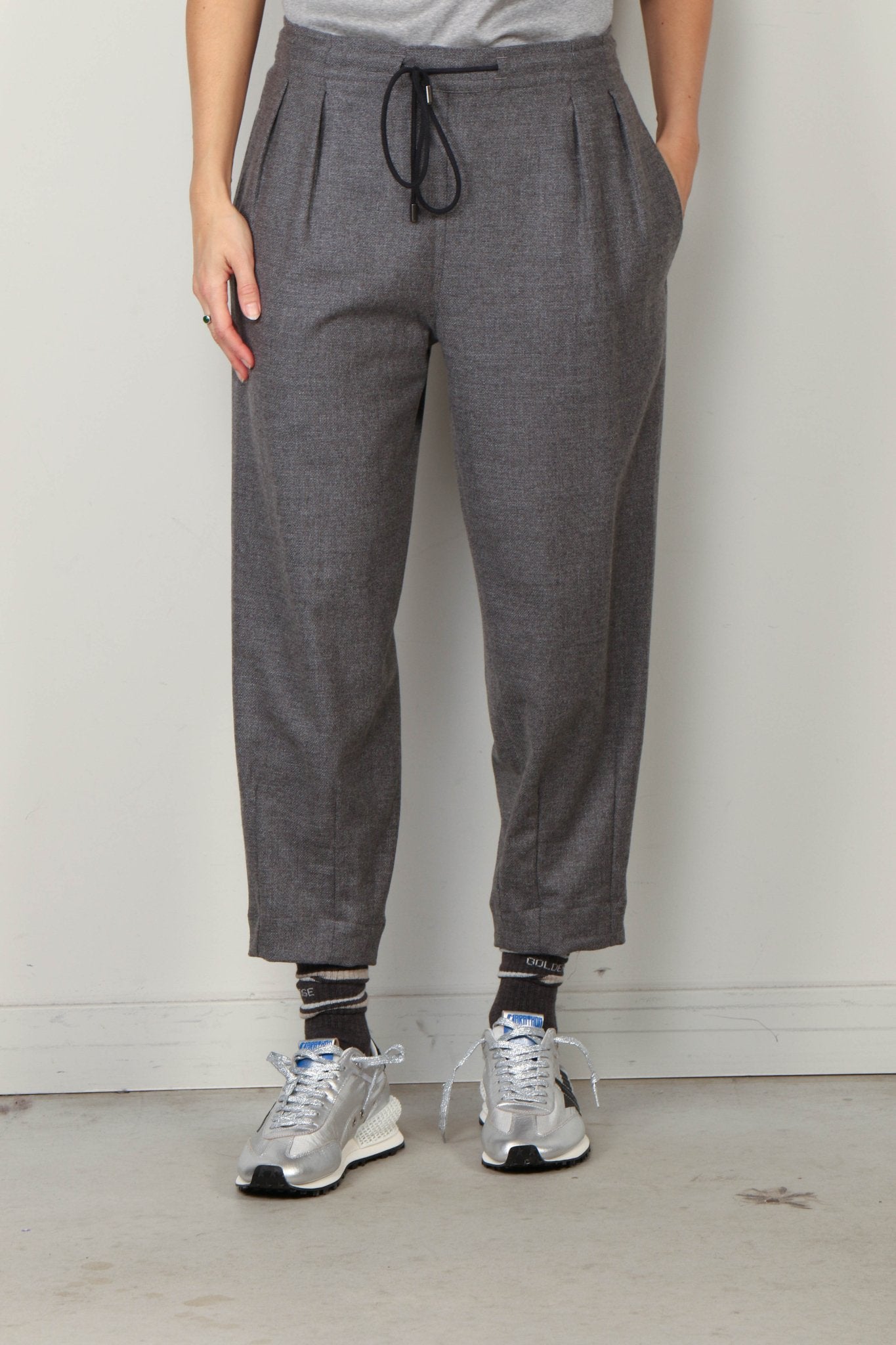 Maria McManus Broek - Barrel Leg Drawstring Trouser - Charcoal Tweed