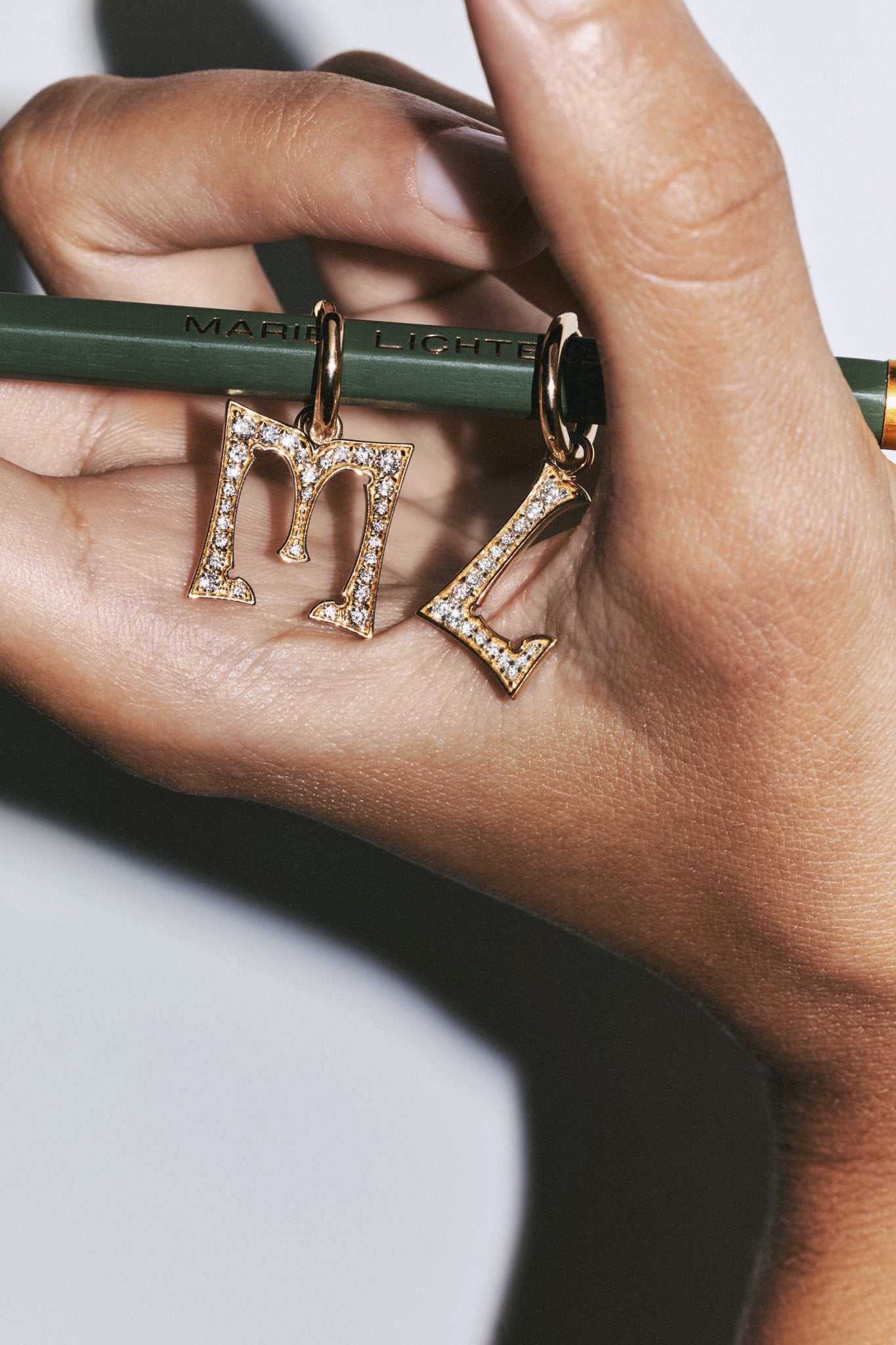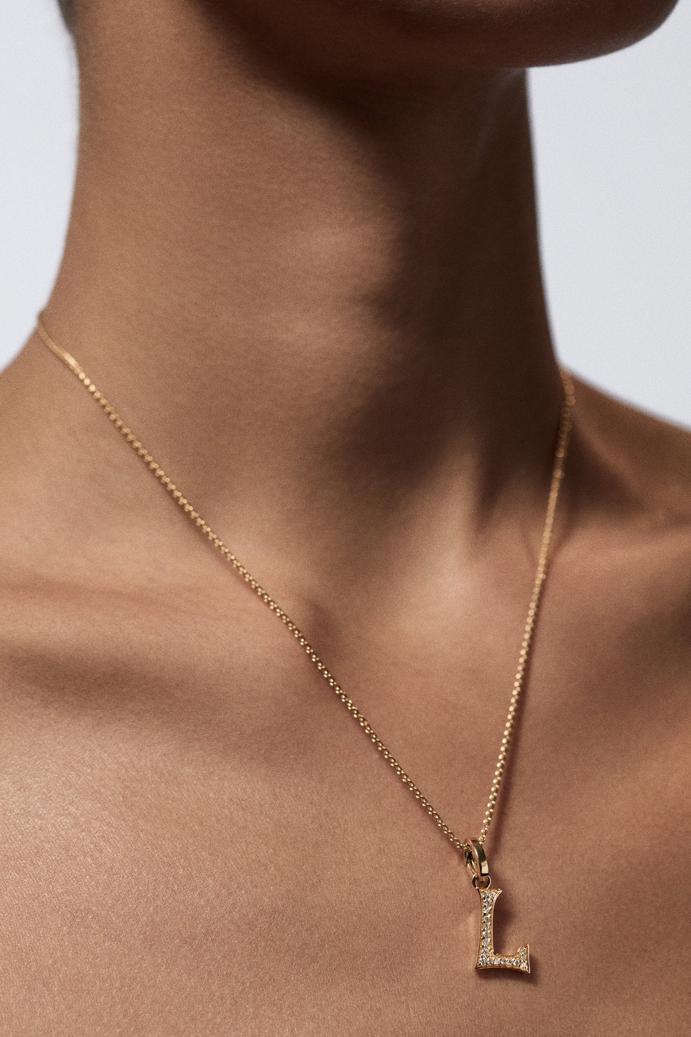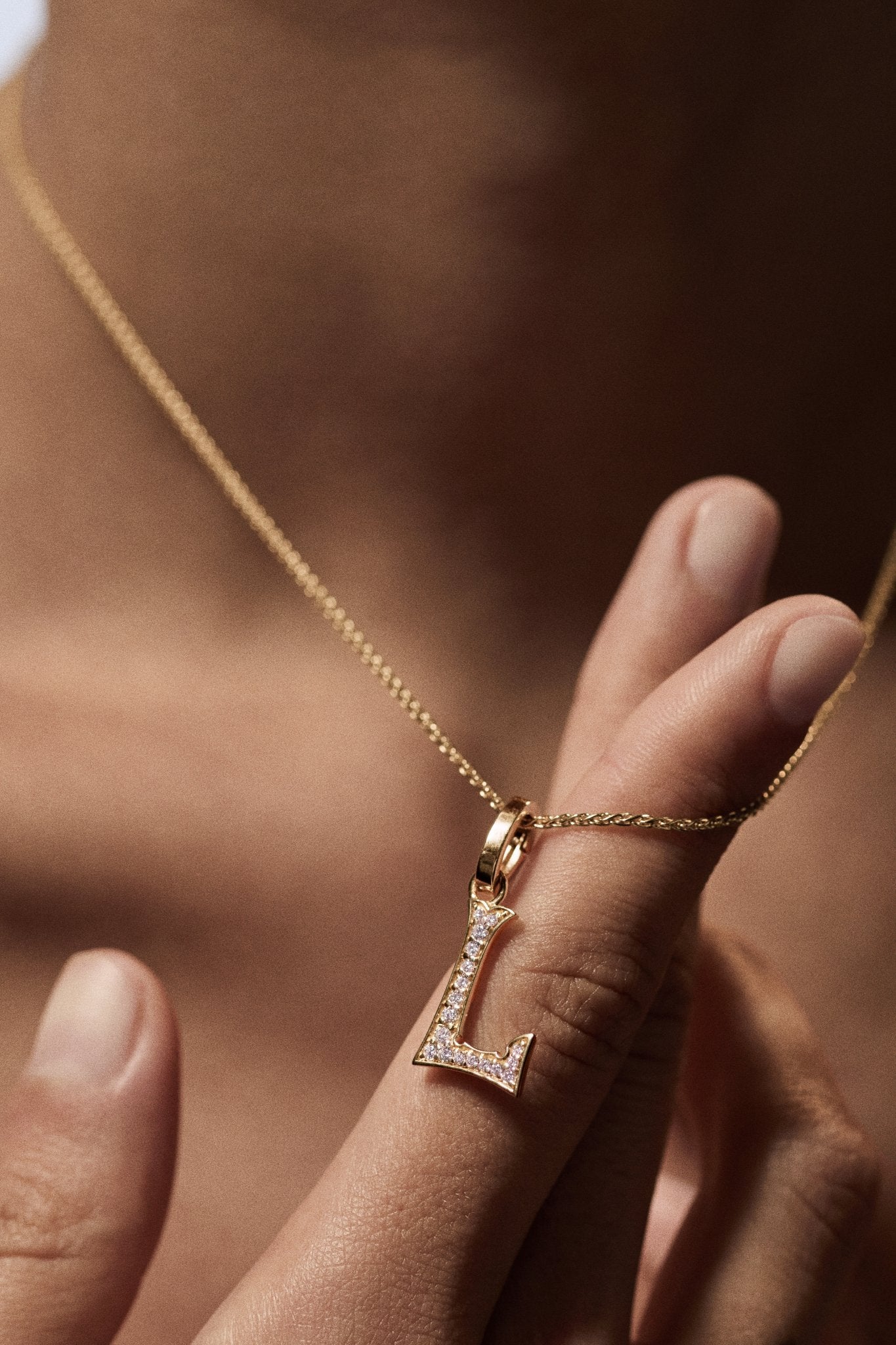 - 18K geel gouden letterhanger met witte diamanten in de letter L