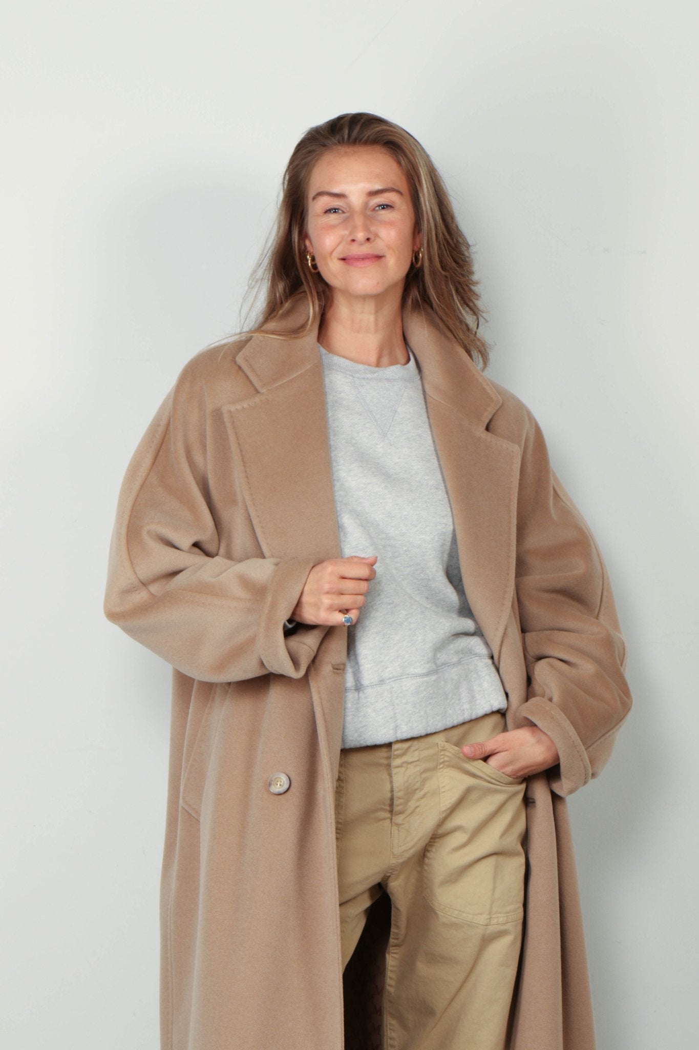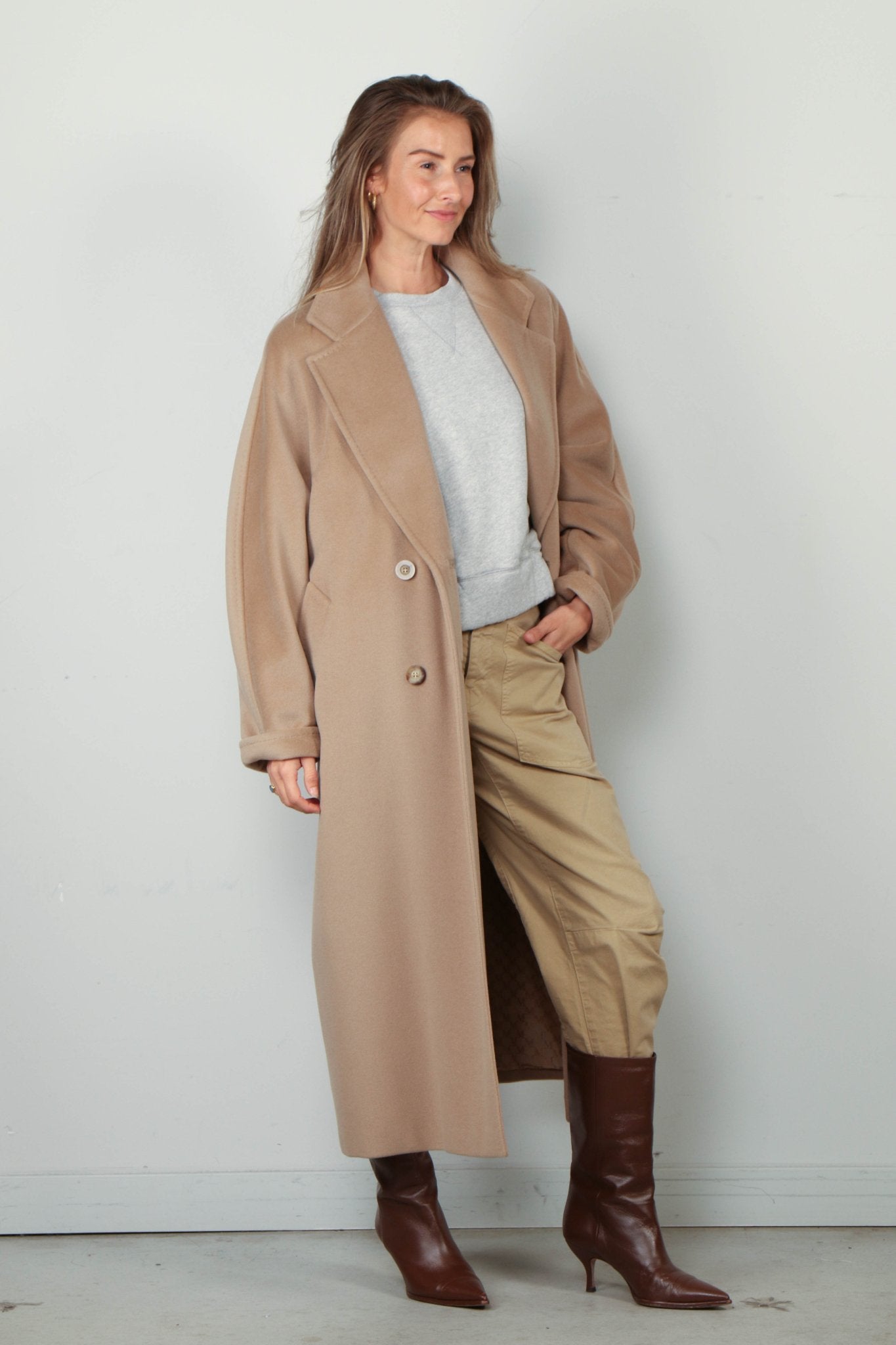 Camel kleurige Max Mara jas in het model Madame.