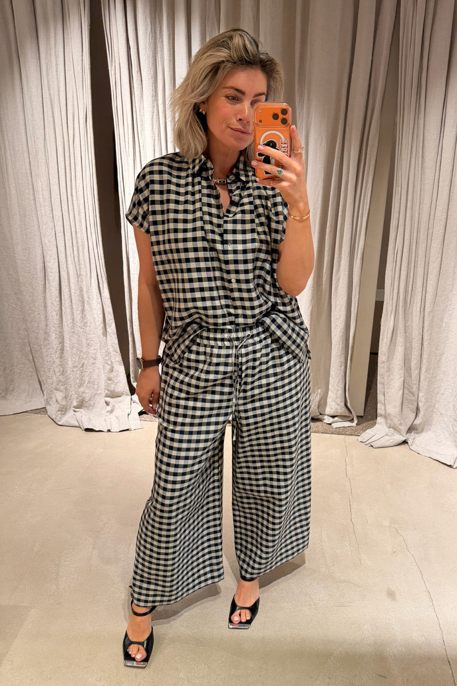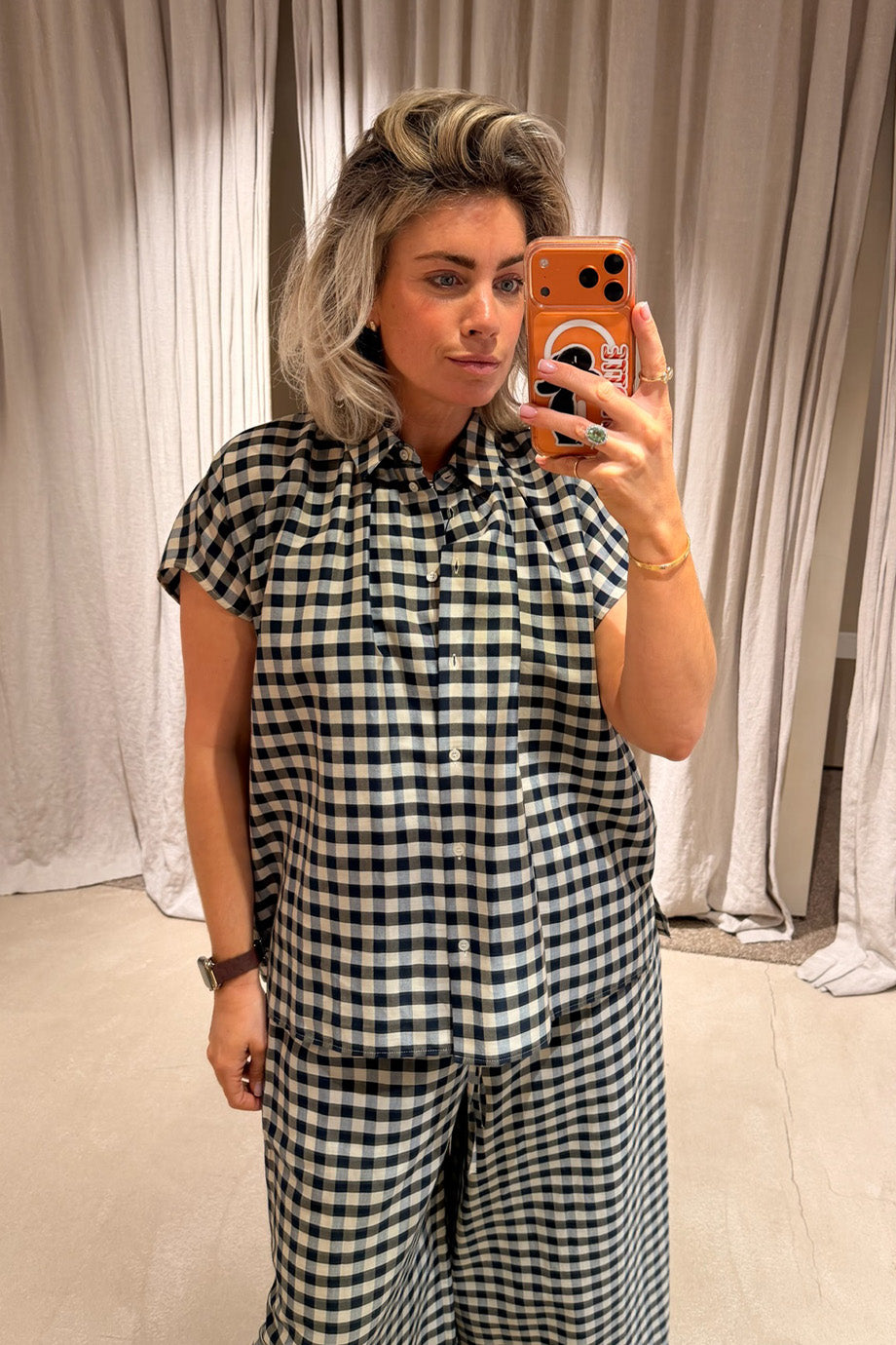- Het model is 1.73m en draagt maat 38