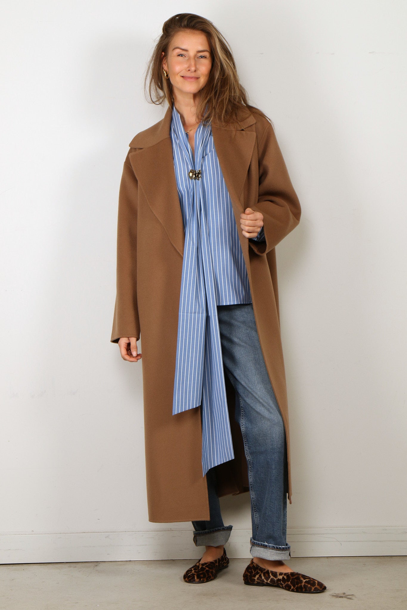 - Het model is 1.73m en draagt maat 38