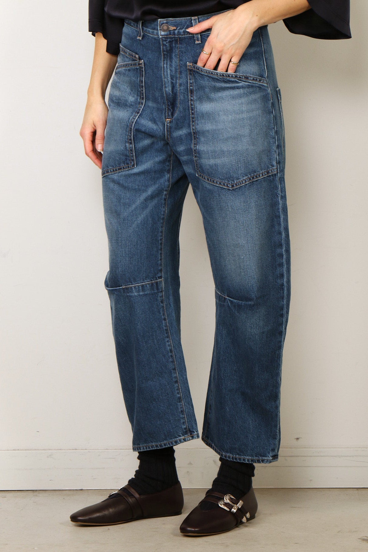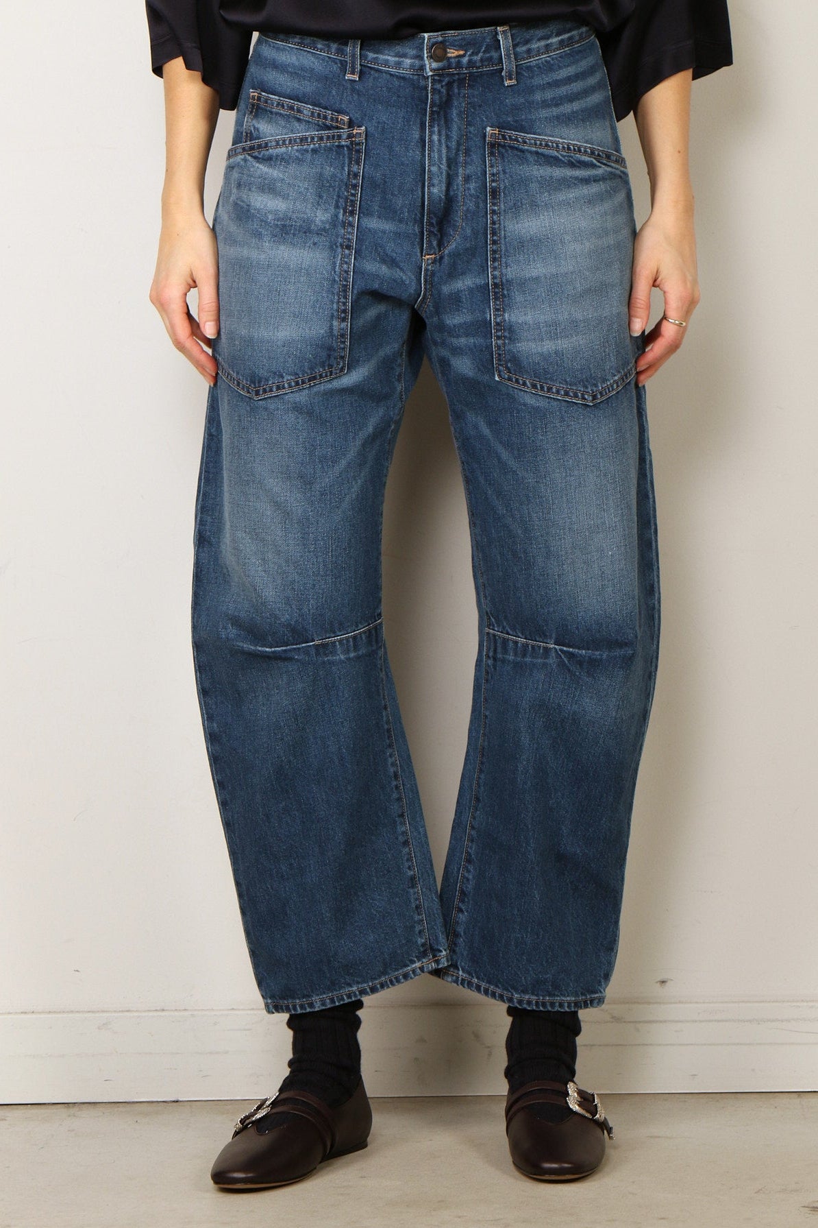 - Relaxed barrel leg jean