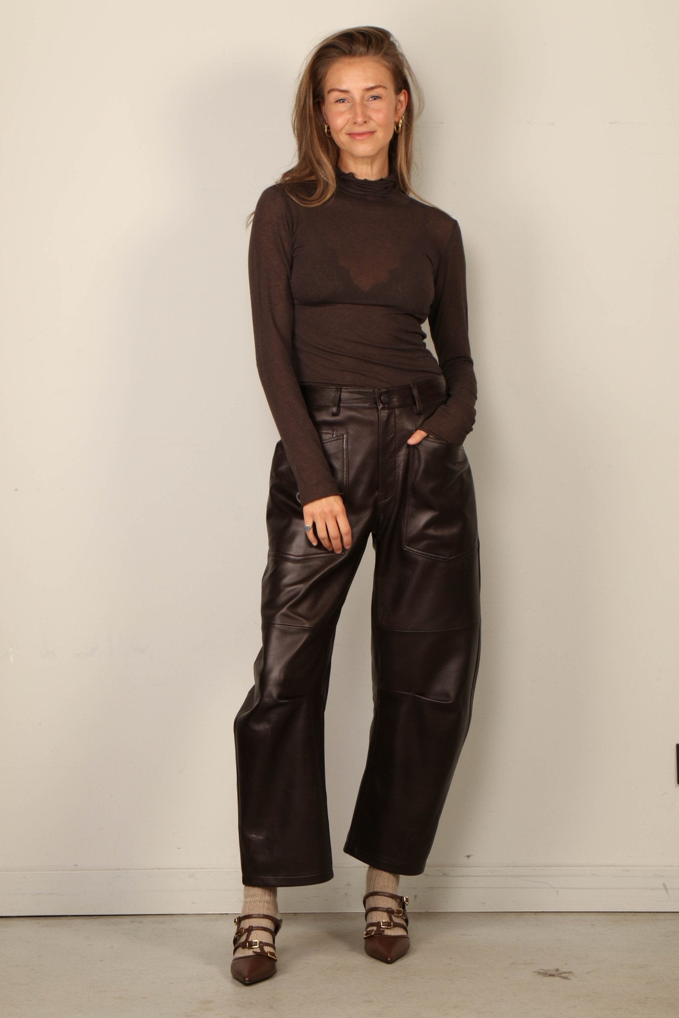 Nili Lotan Broek - Shon Leather - Dark Brown