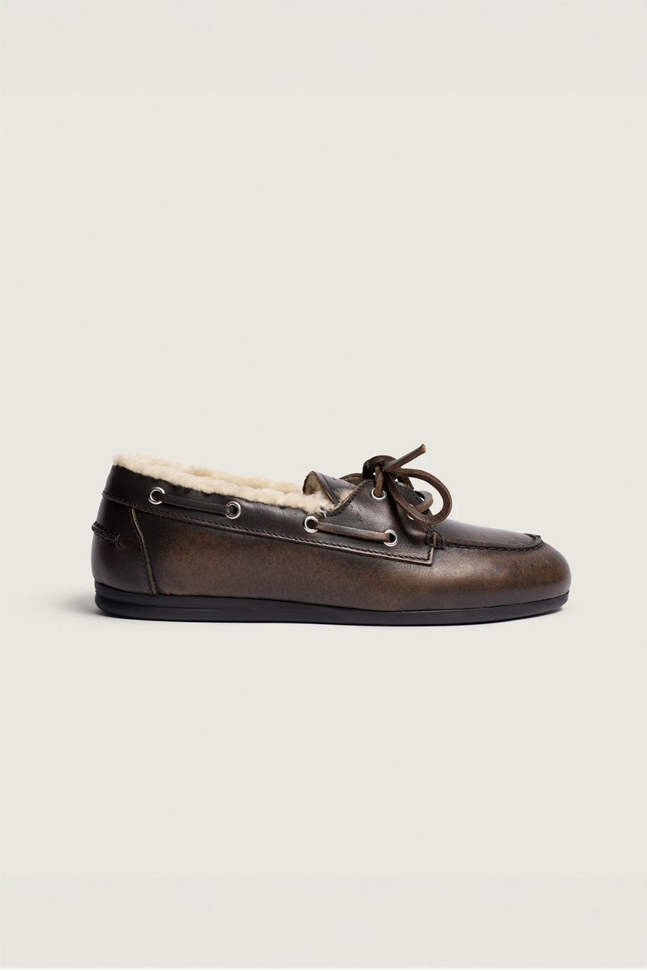 Posa Loafer - Boat Loafer Brushed Fur Leather - Coffee