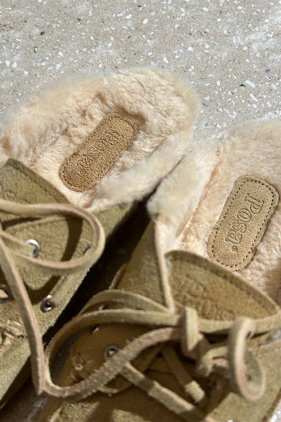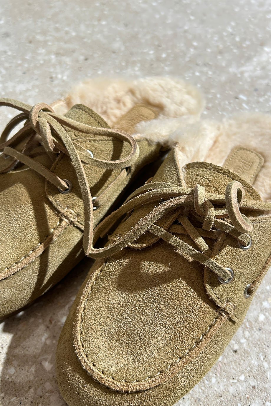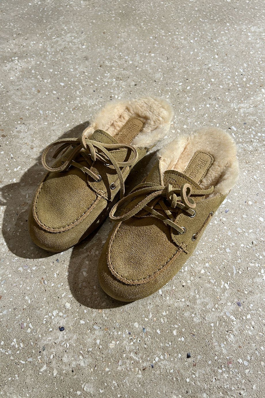 Posa Loafers - Boat Loafer Mule Fur Suede - Desert Tan