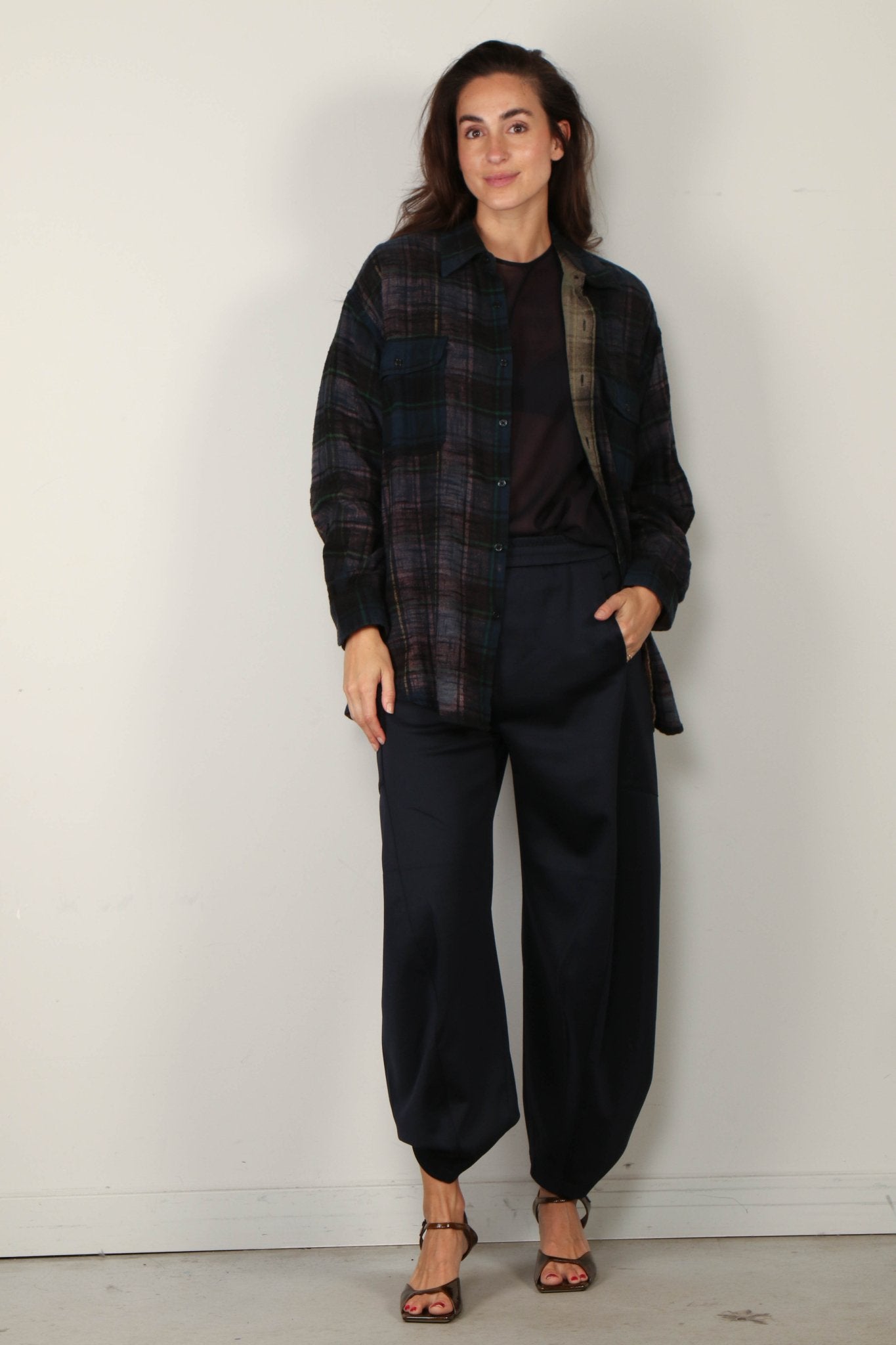 R13 Blouse - Boyfriend Shirt - Navy Plaid Blue